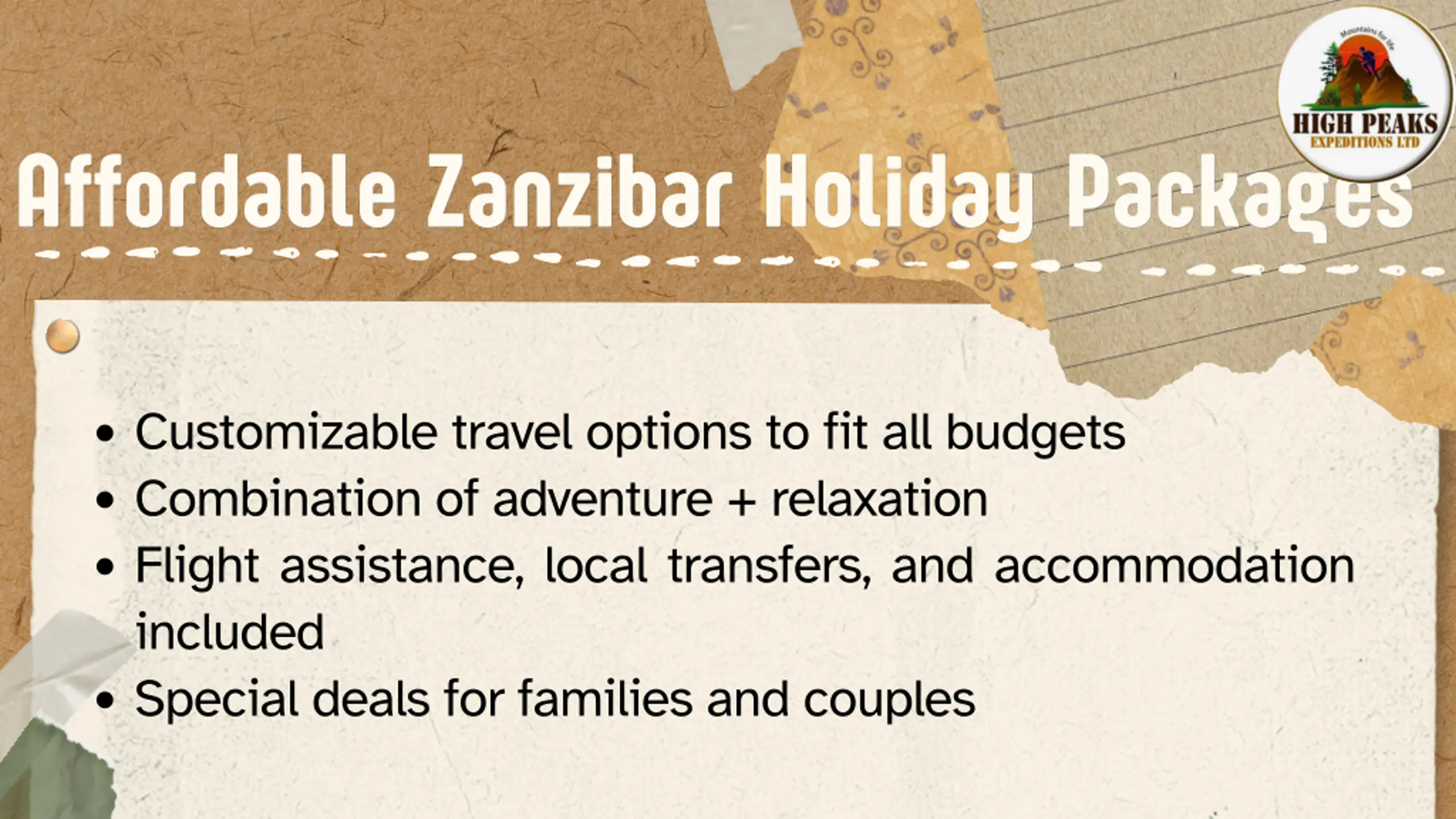 Affordable Zanzibar Holiday Packages Affordable Zanzibar Holiday Packages Customizable travel options to fit all budgets Combination of adventure + relaxation Flight assistance, local transfers, and accommodation included Special deals for families and couples