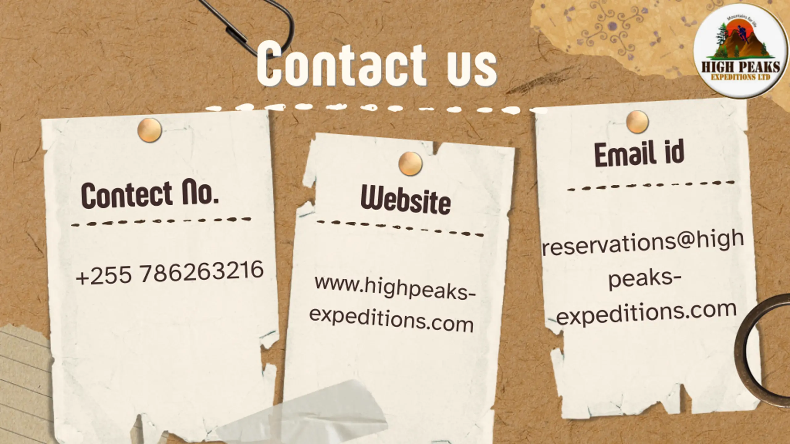 Contact us Contact us Email id Contect No. Website reservations@high peaks- expeditions.com +255 786263216 www.highpeaks- expeditions.com