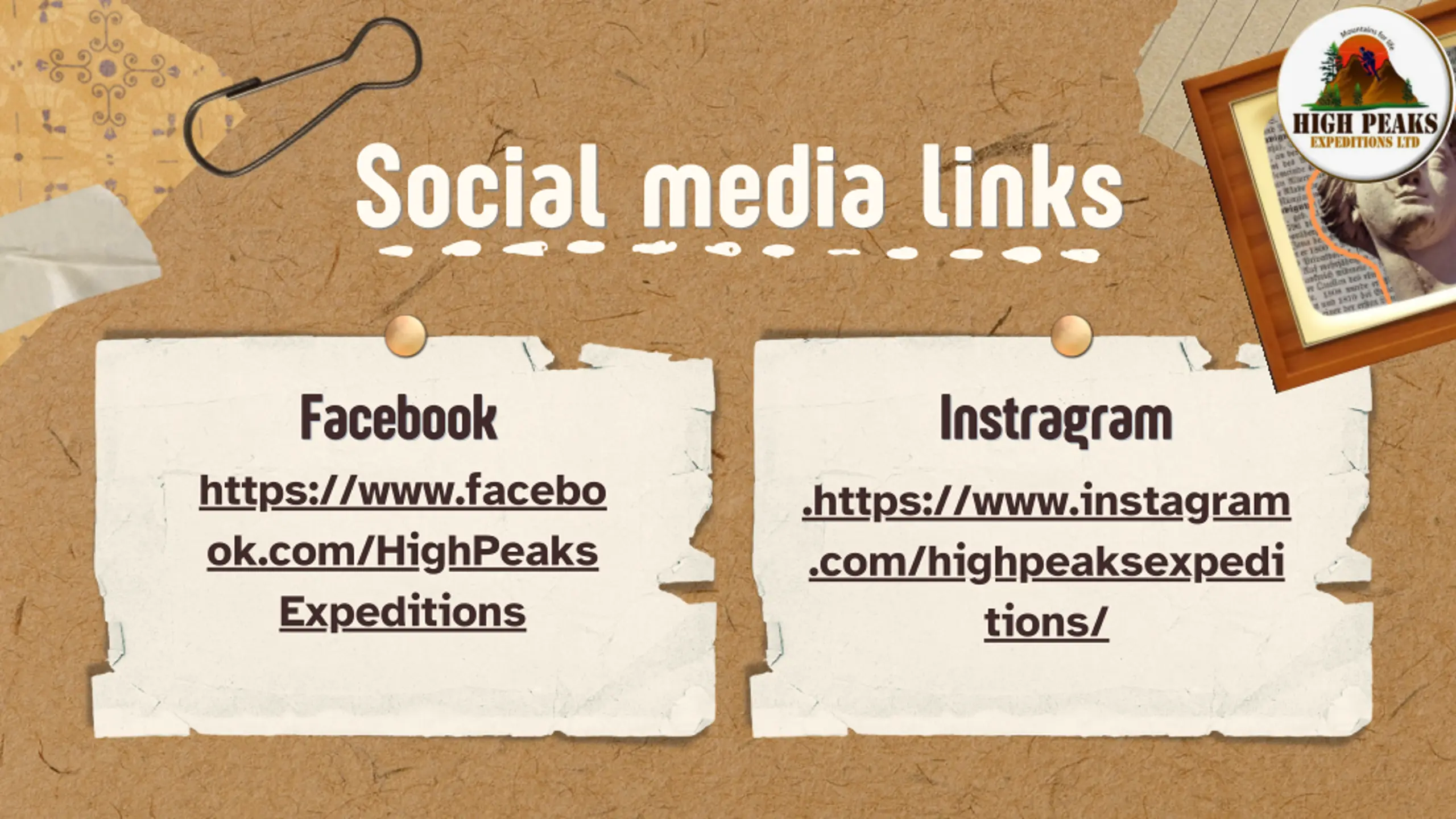 Social media links Social media links Facebook Facebook Instragram Instragram https://www.facebo ok.com/HighPeaks Expeditions .https://www.instagram .com/highpeaksexpedi tions/