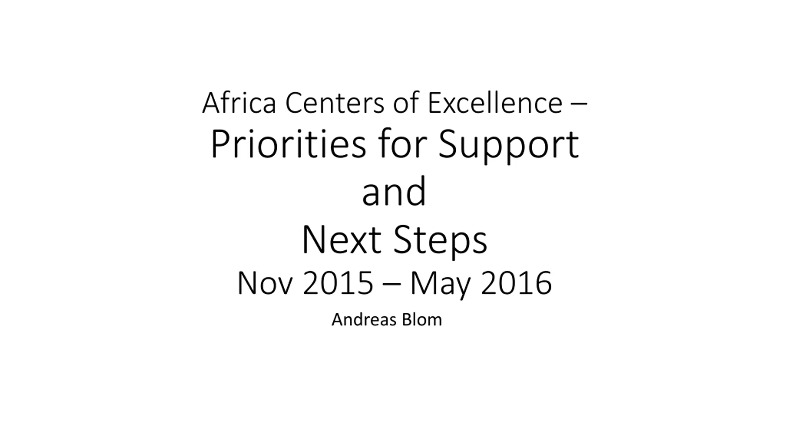 Africa Centers of Excellence Priorities for Support and Next Steps Nov 2015 May 2016 Andreas Blom