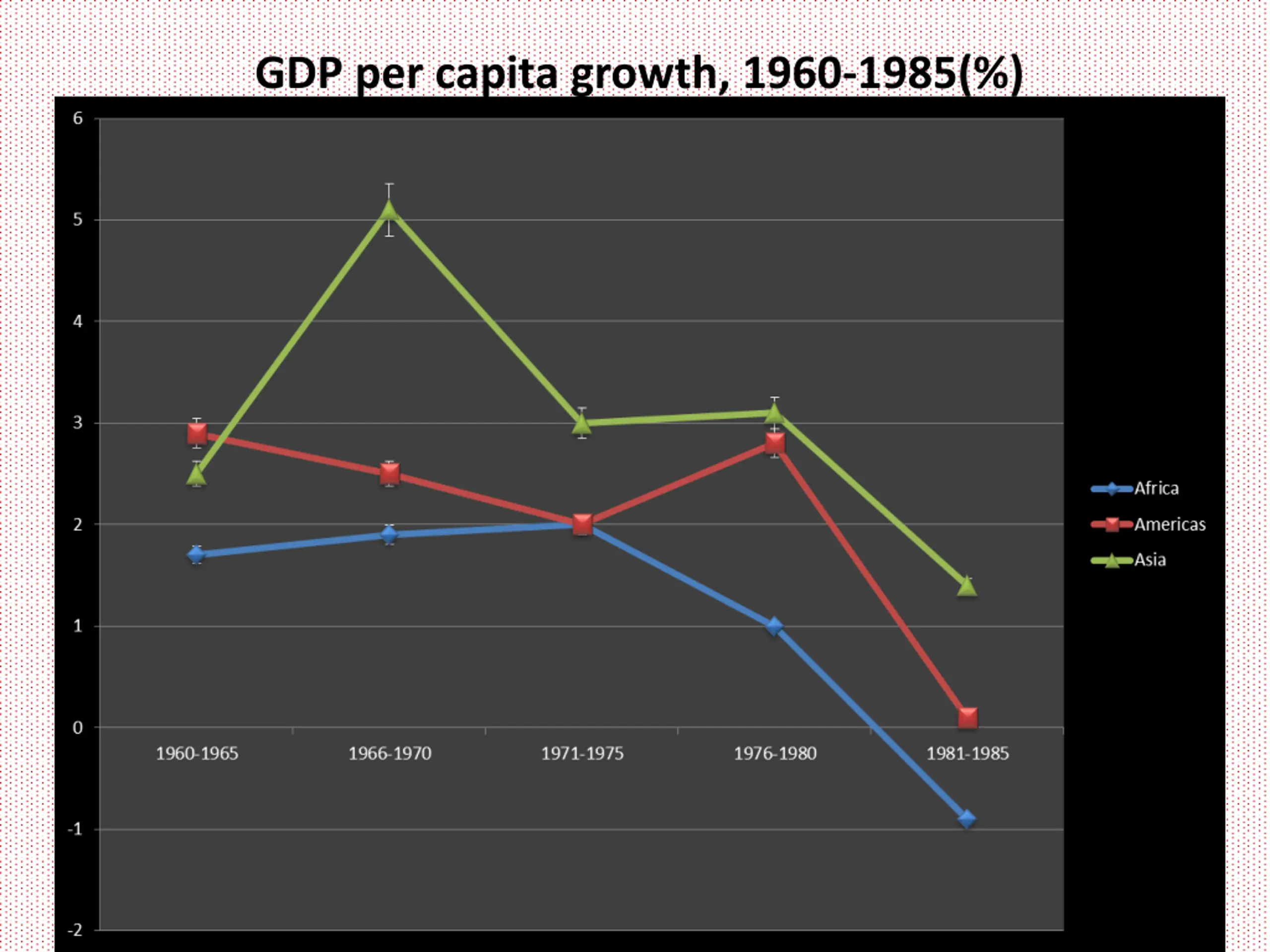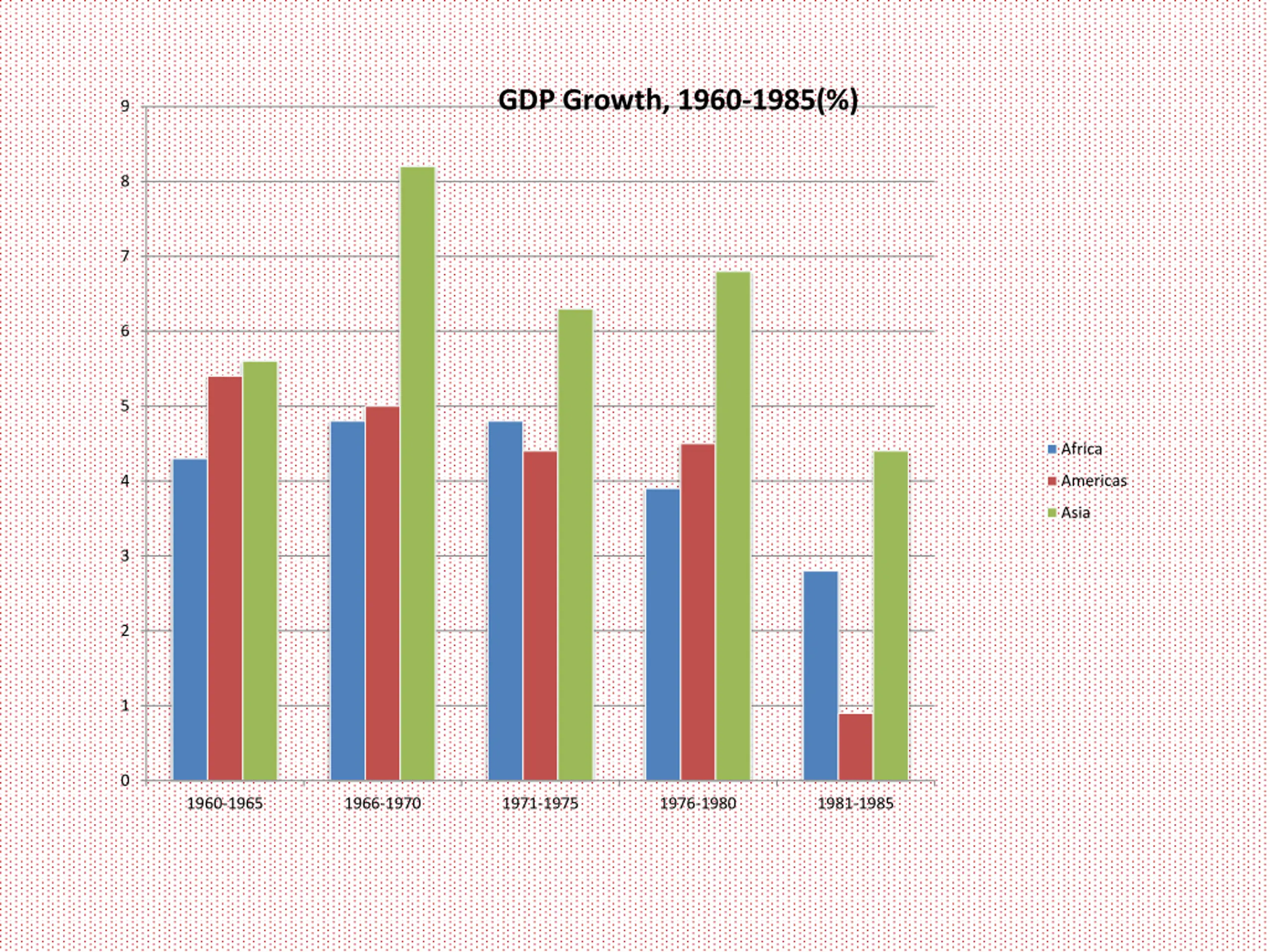 GDP Growth, 1960-1985(%) 9 8 7 6 5 Africa Americas 4 Asia 3 2 1 0 1960-1965 1966-1970 1971-1975 1976-1980 1981-1985