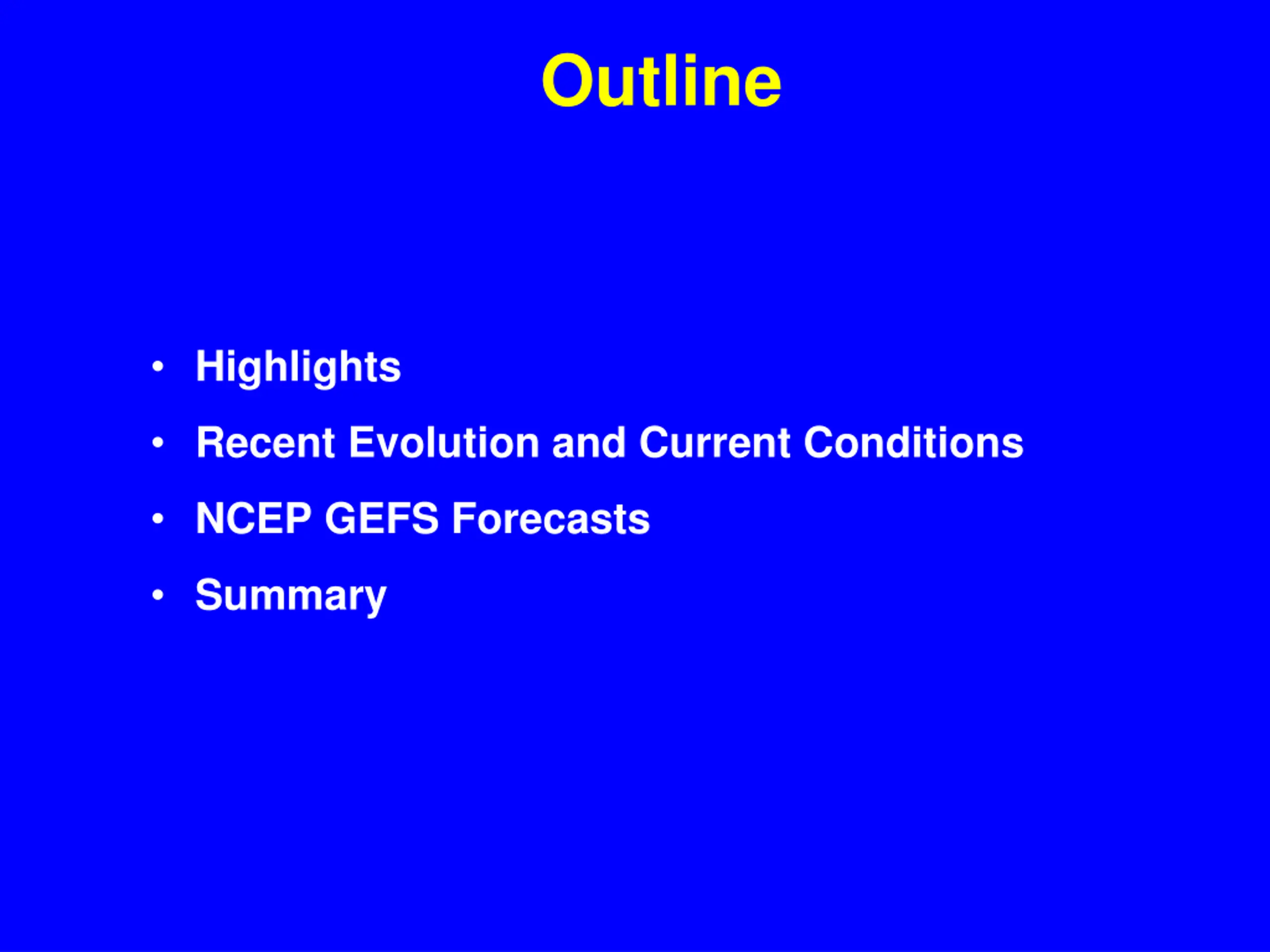 Outline Highlights Recent Evolution and Current Conditions NCEP GEFS Forecasts Summary