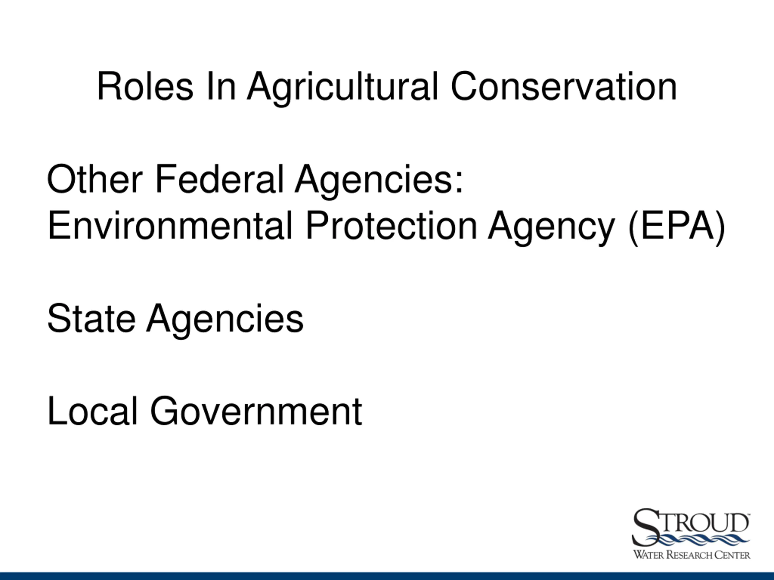 Roles In Agricultural Conservation Other Federal Agencies: Environmental Protection Agency (EPA) State Agencies Photo: Marissa Morton Local Government