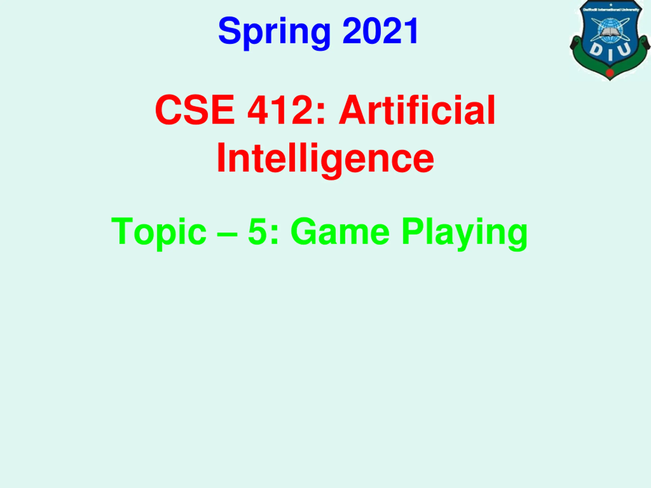 Spring 2021 CSE 412: Artificial Intelligence Topic 5: Game Playing