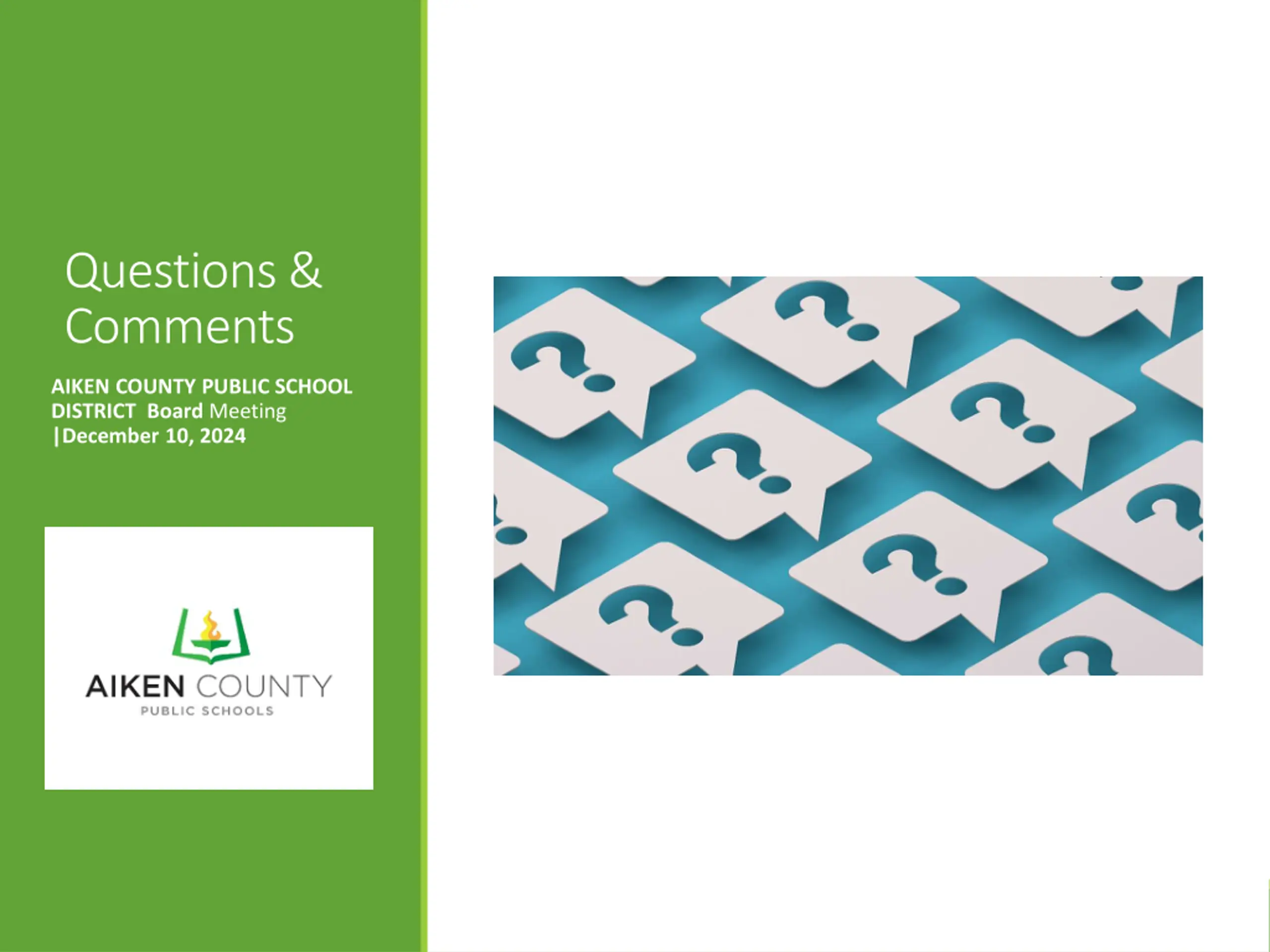 Questions & Comments AIKEN COUNTY PUBLIC SCHOOL DISTRICT Board Meeting |December 10, 2024