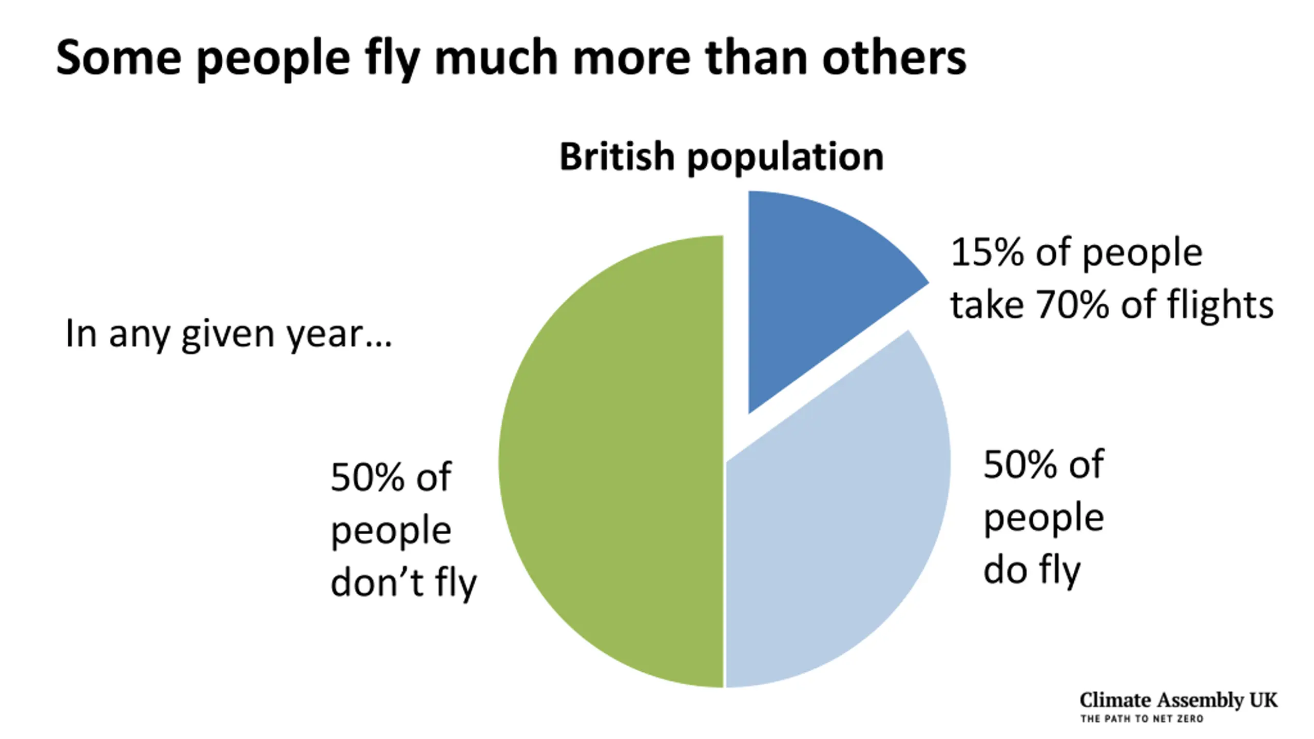 Some people fly much more than others British population 15% of people take 70% of flights In any given year 50% of people do fly 50% of people don t fly