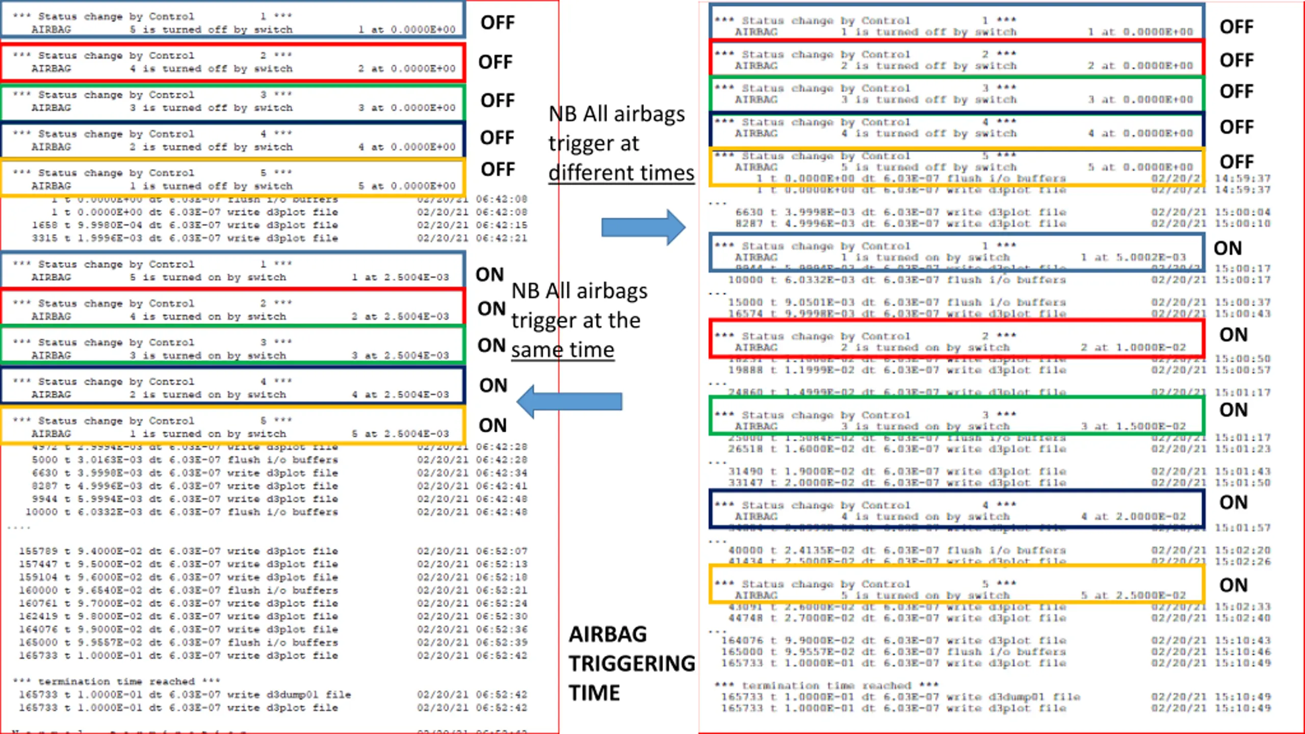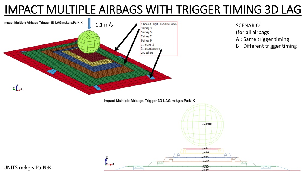 IMPACT MULTIPLE AIRBAGS WITH TRIGGER TIMING 3D LAG IMPACT MULTIPLE AIRBAGS WITH TRIGGER TIMING 3D LAG 1.1 m/s SCENARIO (for all airbags) A : Same trigger timing B : Different trigger timing UNITS m:kg:s:Pa:N:K