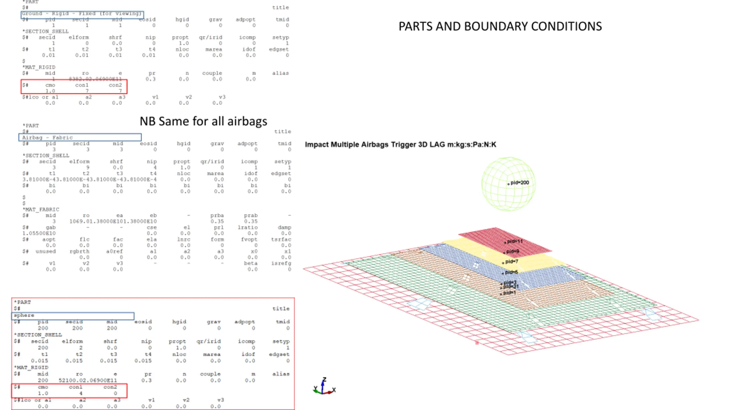 PARTS AND BOUNDARY CONDITIONS NB Same for all airbags
