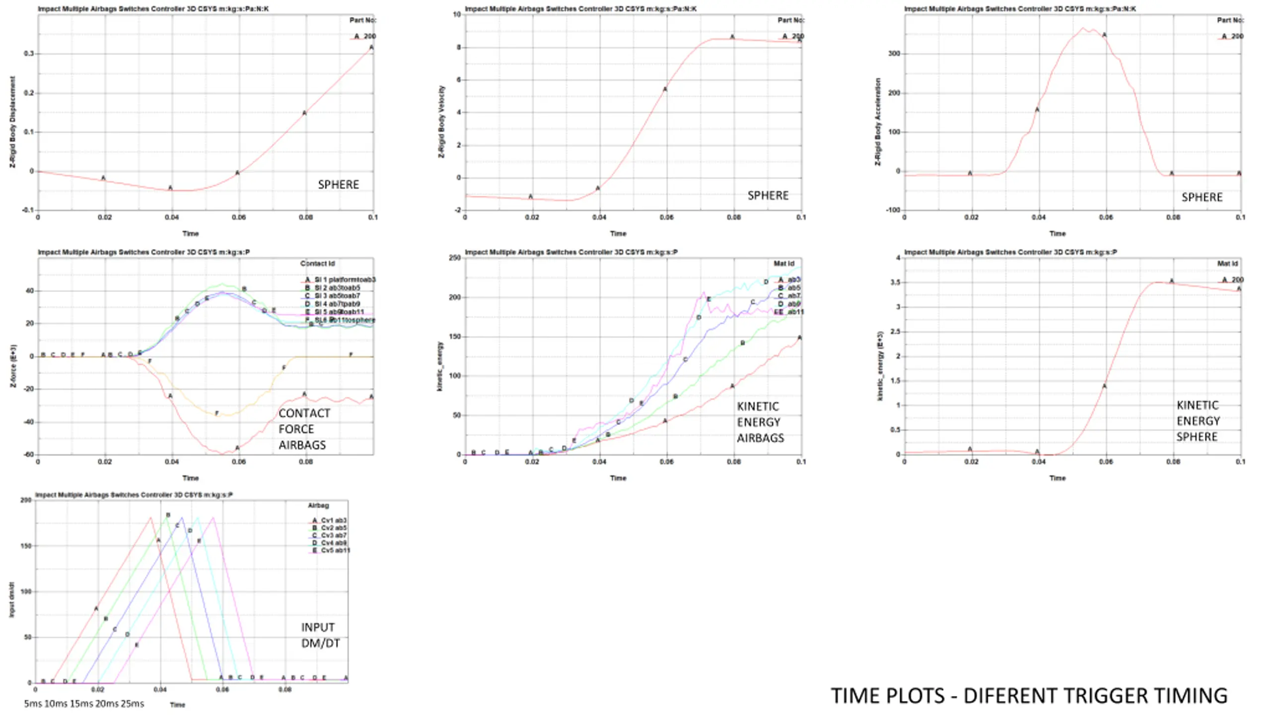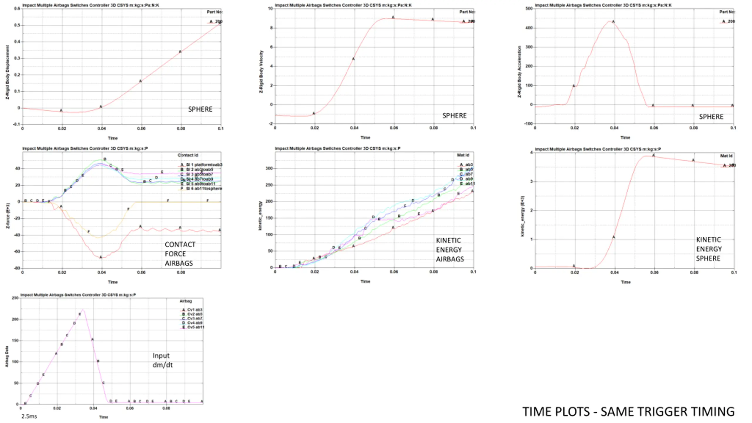 SPHERE SPHERE SPHERE KINETIC ENERGY SPHERE KINETIC ENERGY AIRBAGS CONTACT FORCE AIRBAGS Input dm/dt TIME PLOTS - SAME TRIGGER TIMING 2.5ms