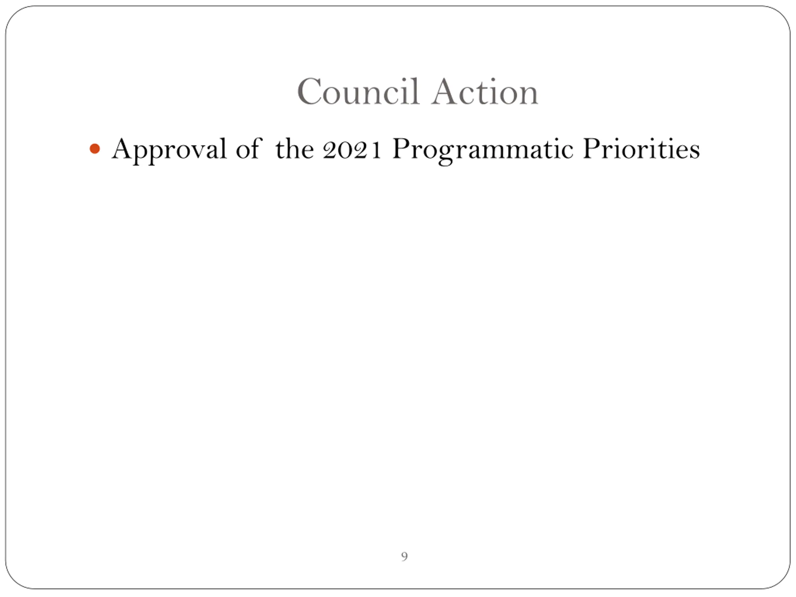 Council Action Approval of the 2021 Programmatic Priorities 9