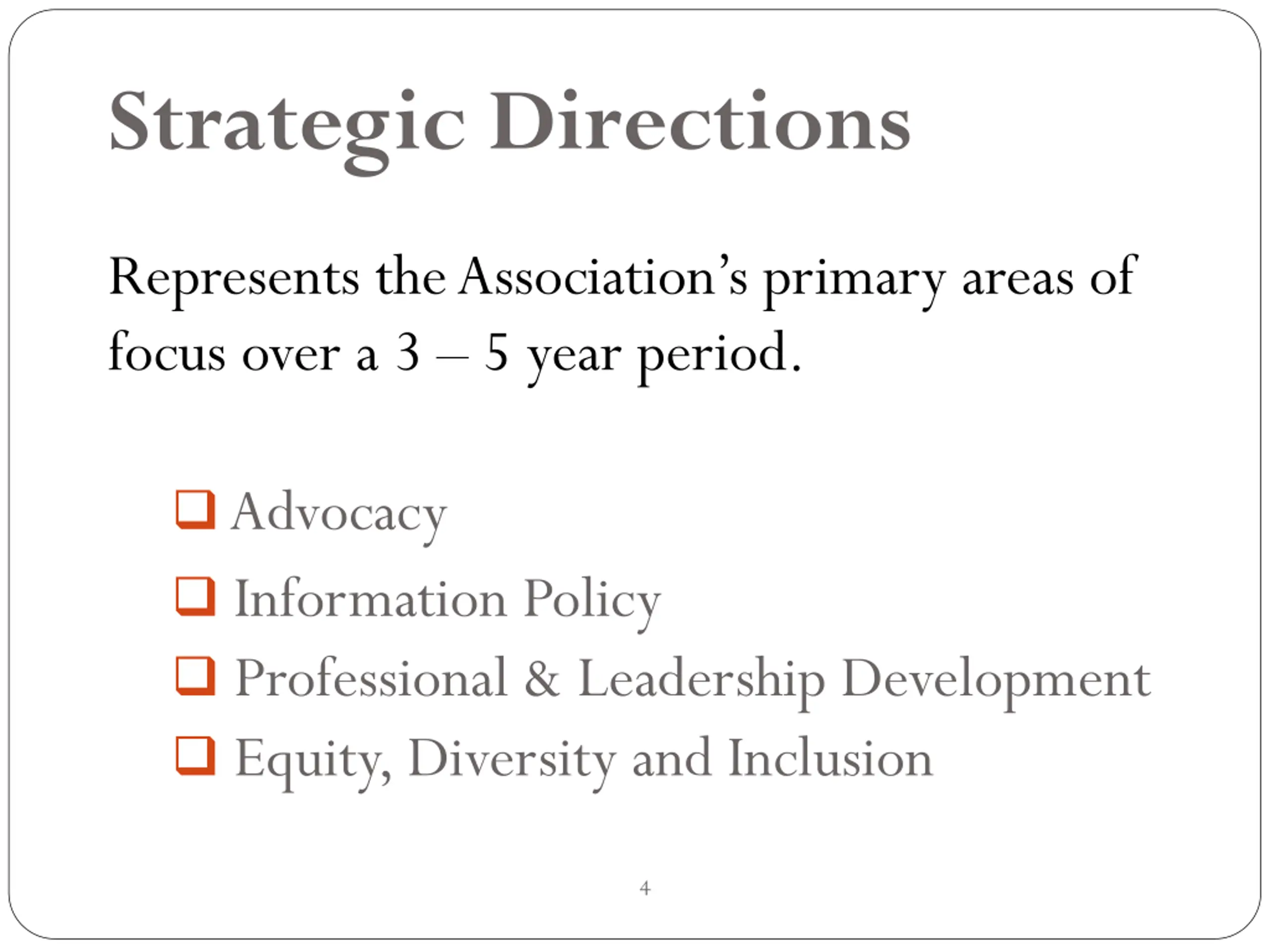 Strategic Directions Represents the Association s primary areas of focus over a 3 5 year period. Advocacy Information Policy Professional & Leadership Development Equity, Diversity and Inclusion 4