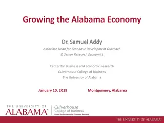 Revenue Estimates and Economic Assumptions Alabama s economy remains resilient: Alabama s Unemployment Rate is currently 3.1% Nationwide Unemployment Rate is currently 3.9% State General Fund Revenues Education Trust Fund Revenues FY 2021 - historic 11.44% growth FY 2021 - historic 16% growth Estimated FY 2023 - 2.08% growth Estimated FY 2023 - 3.61% growth