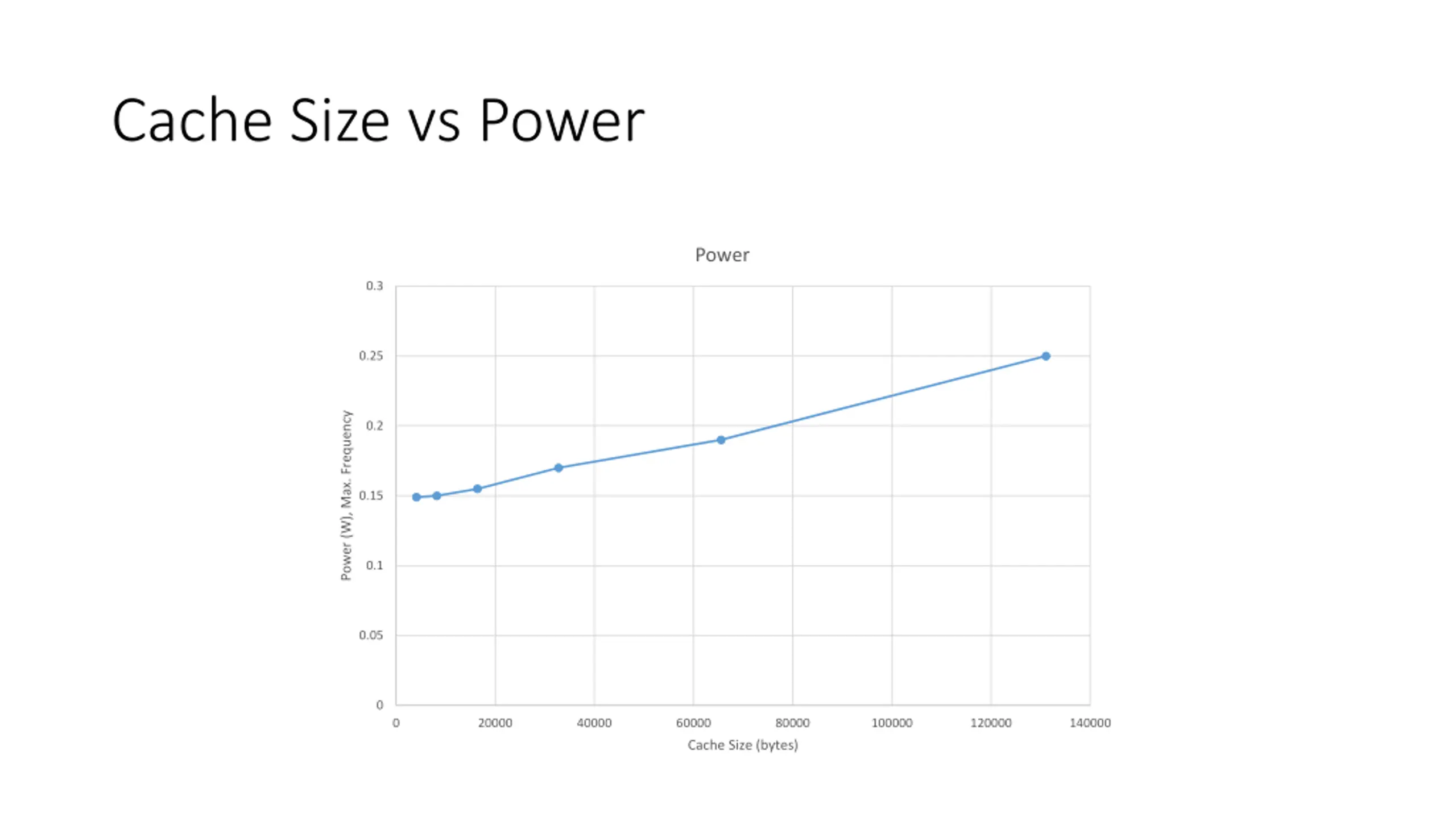Cache Size vs Power Power 0.3 0.25 Power (W), Max. Frequency 0.2 0.15 0.1 0.05 0 0 20000 40000 60000 80000 100000 120000 140000 Cache Size (bytes)