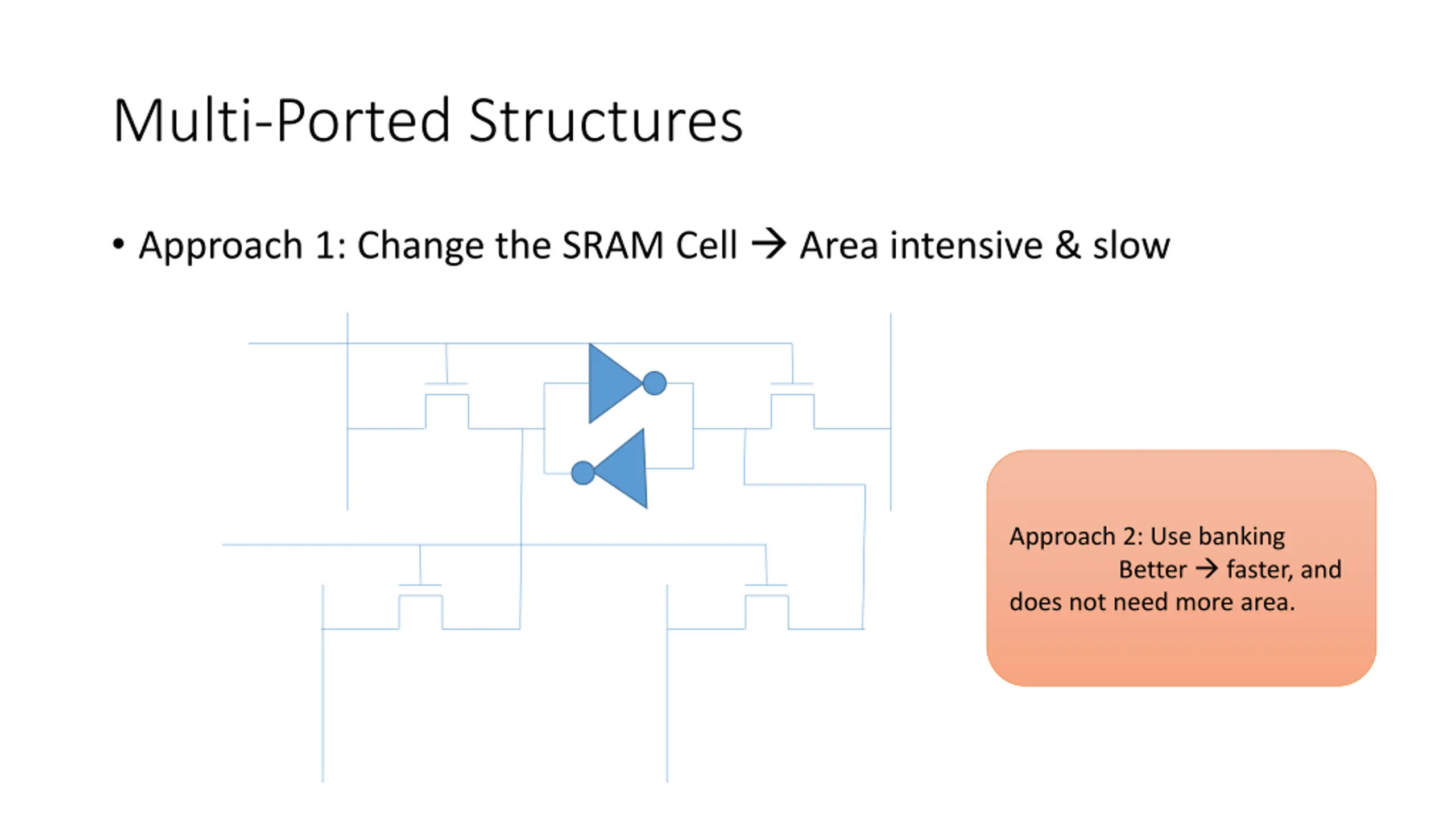 Multi-Ported Structures Approach 1: Change the SRAM Cell Area intensive & slow Approach 2: Use banking Better faster, and does not need more area.