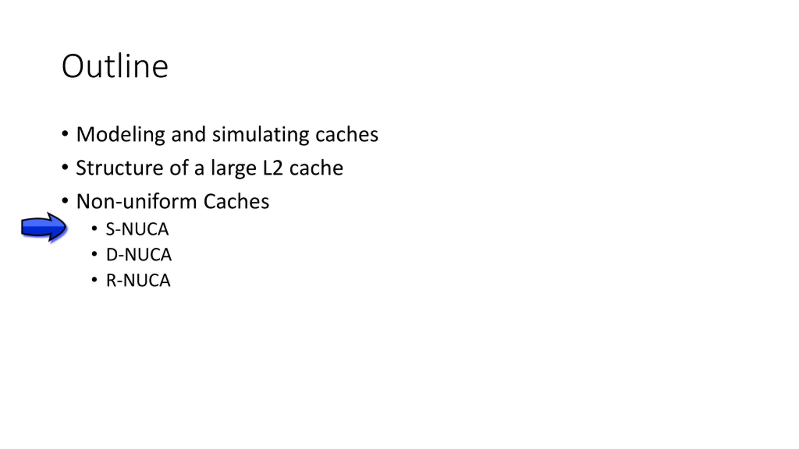 Outline Modeling and simulating caches Structure of a large L2 cache Non-uniform Caches S-NUCA D-NUCA R-NUCA