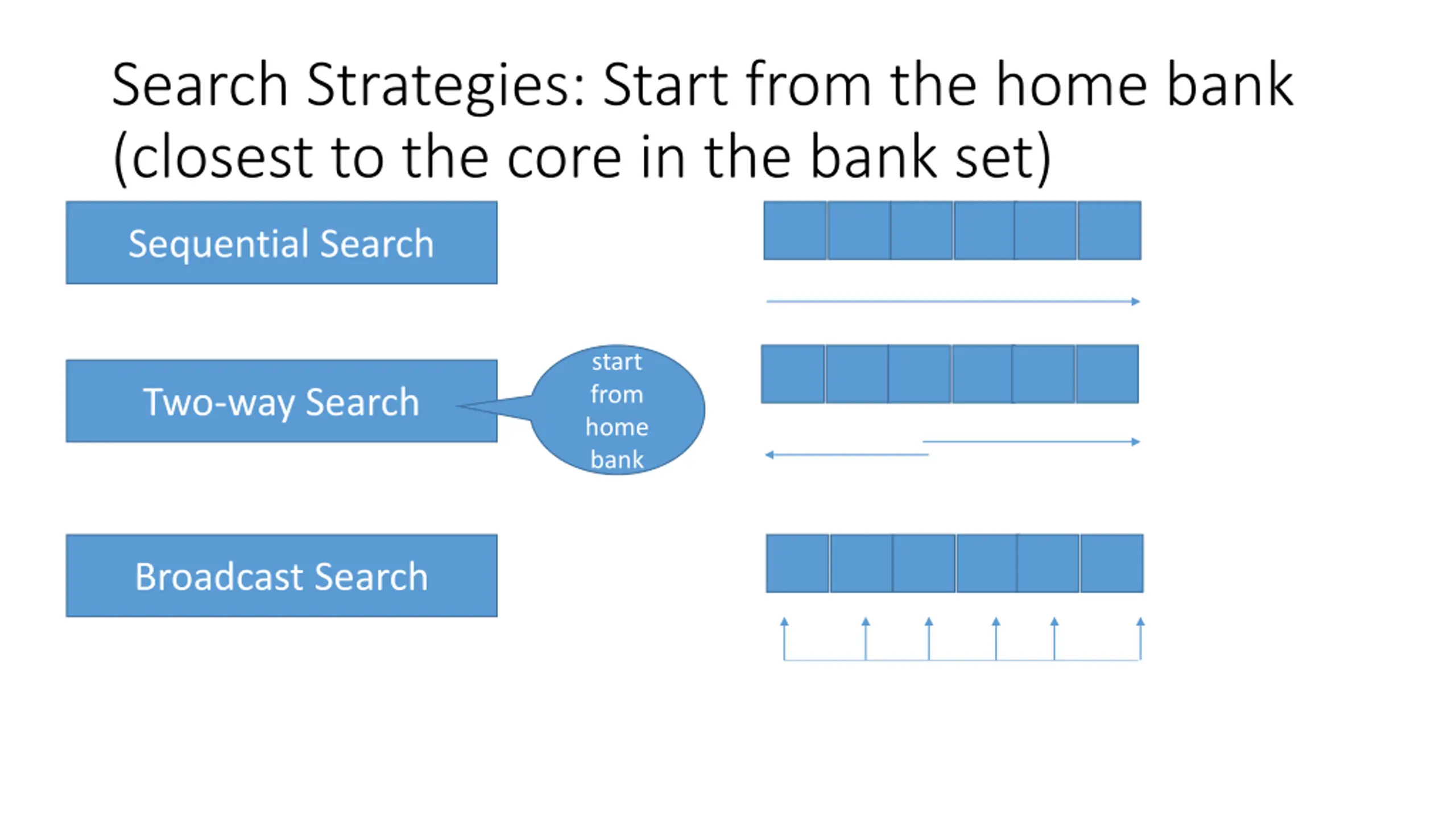 Search Strategies: Start from the home bank (closest to the core in the bank set) Sequential Search start from home bank Two-way Search Broadcast Search