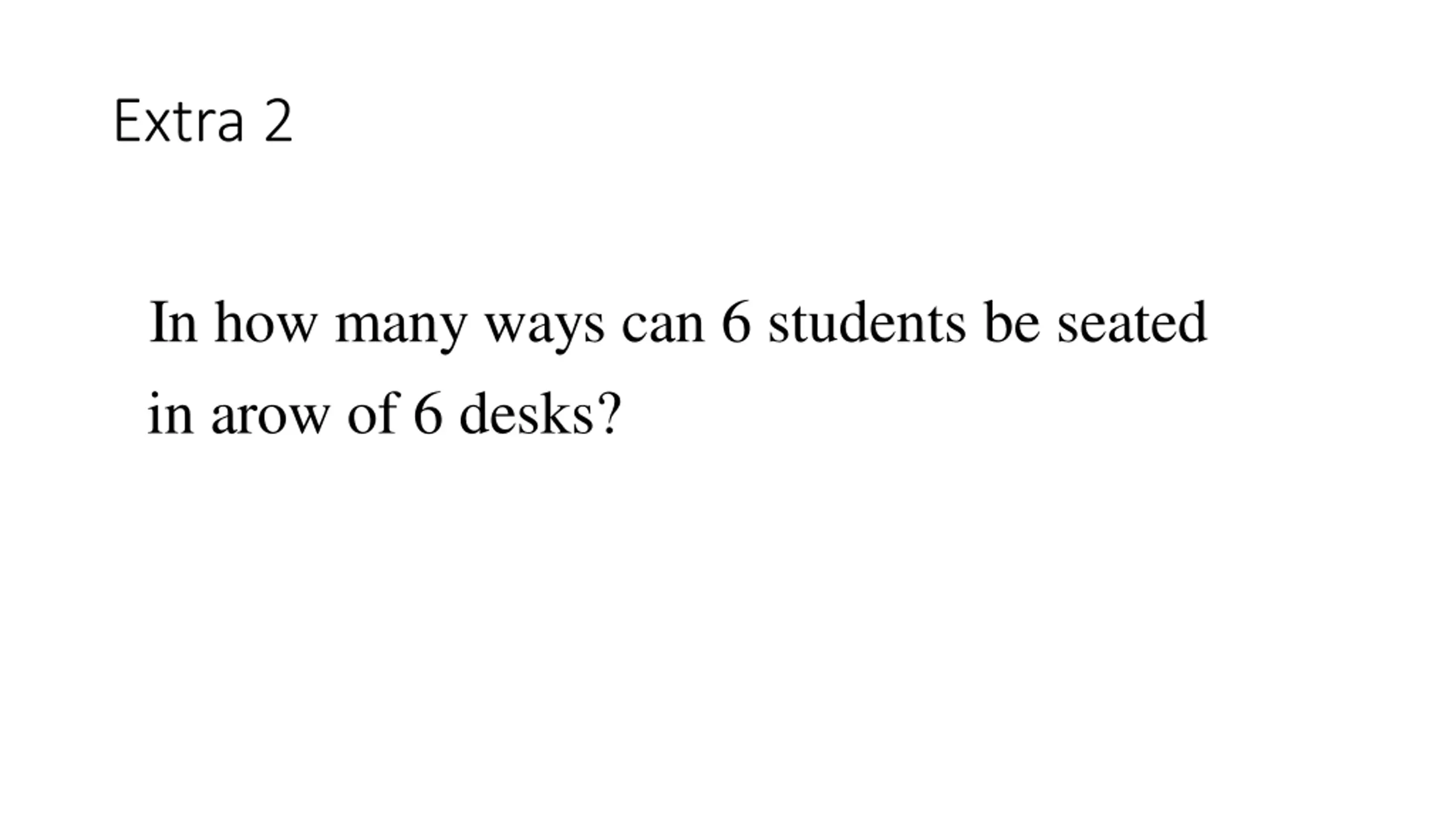 Extra 2 In how many ways can 6 students be seated in arow of 6 desks?