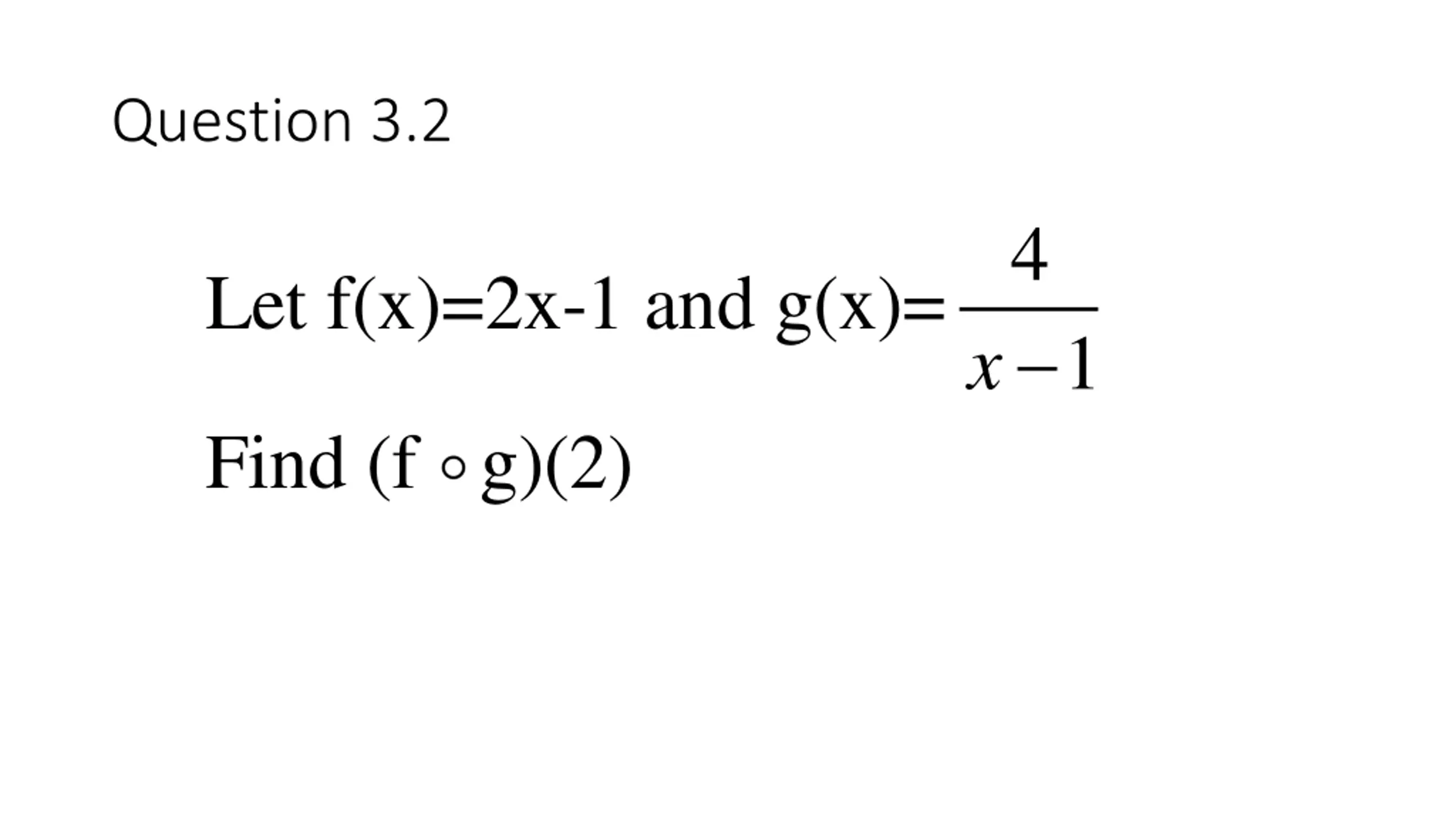 Question 3.2 4 Let f(x)=2x-1 and g(x)= x 1 Find (f g)(2)