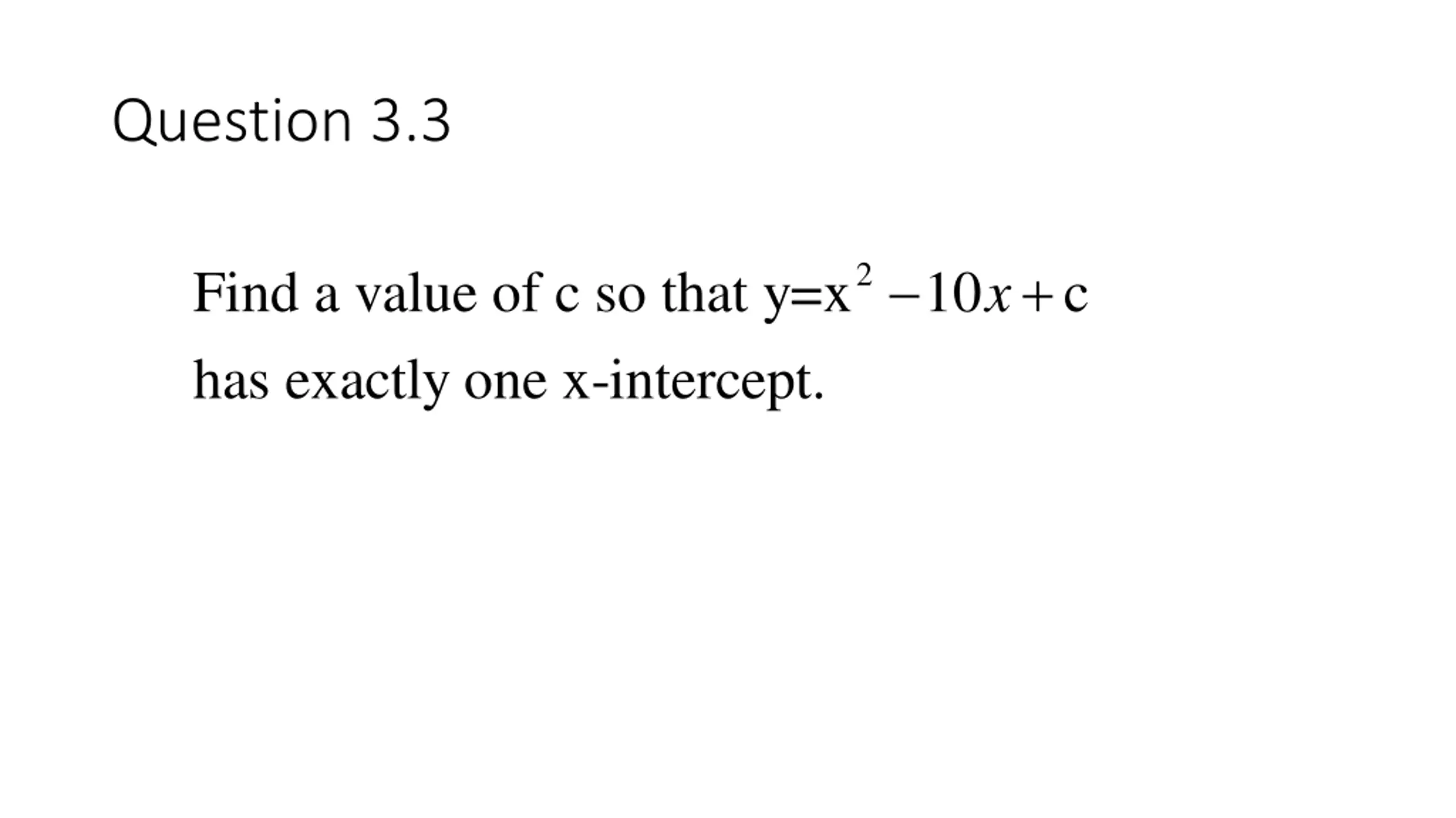 Question 3.3 + 2 Find a value of c so that y=x has exactly one x-intercept. 10 c x