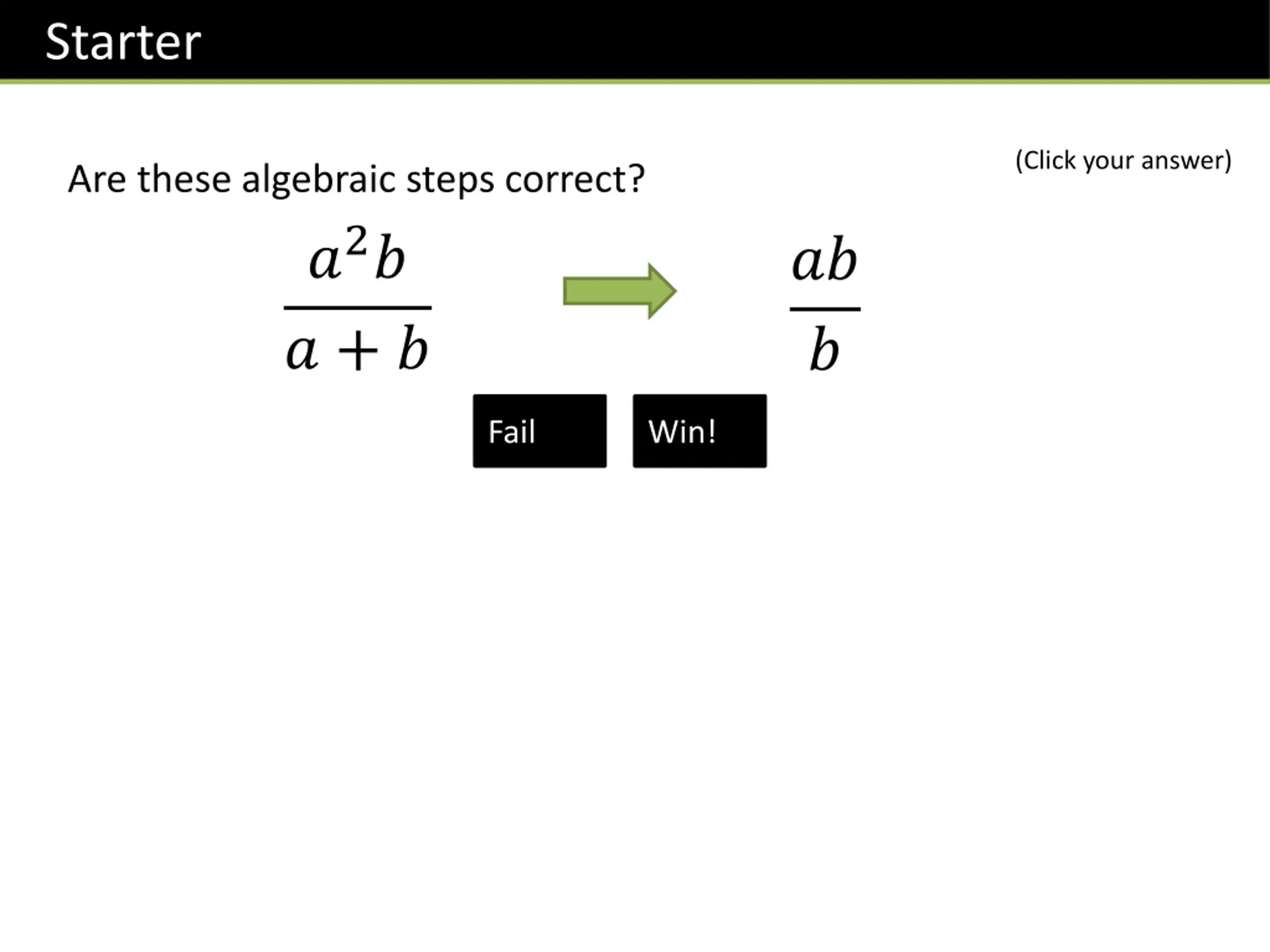 Starter (Click your answer) Are these algebraic steps correct? ?2? ? + ? ?? ? Fail Win!