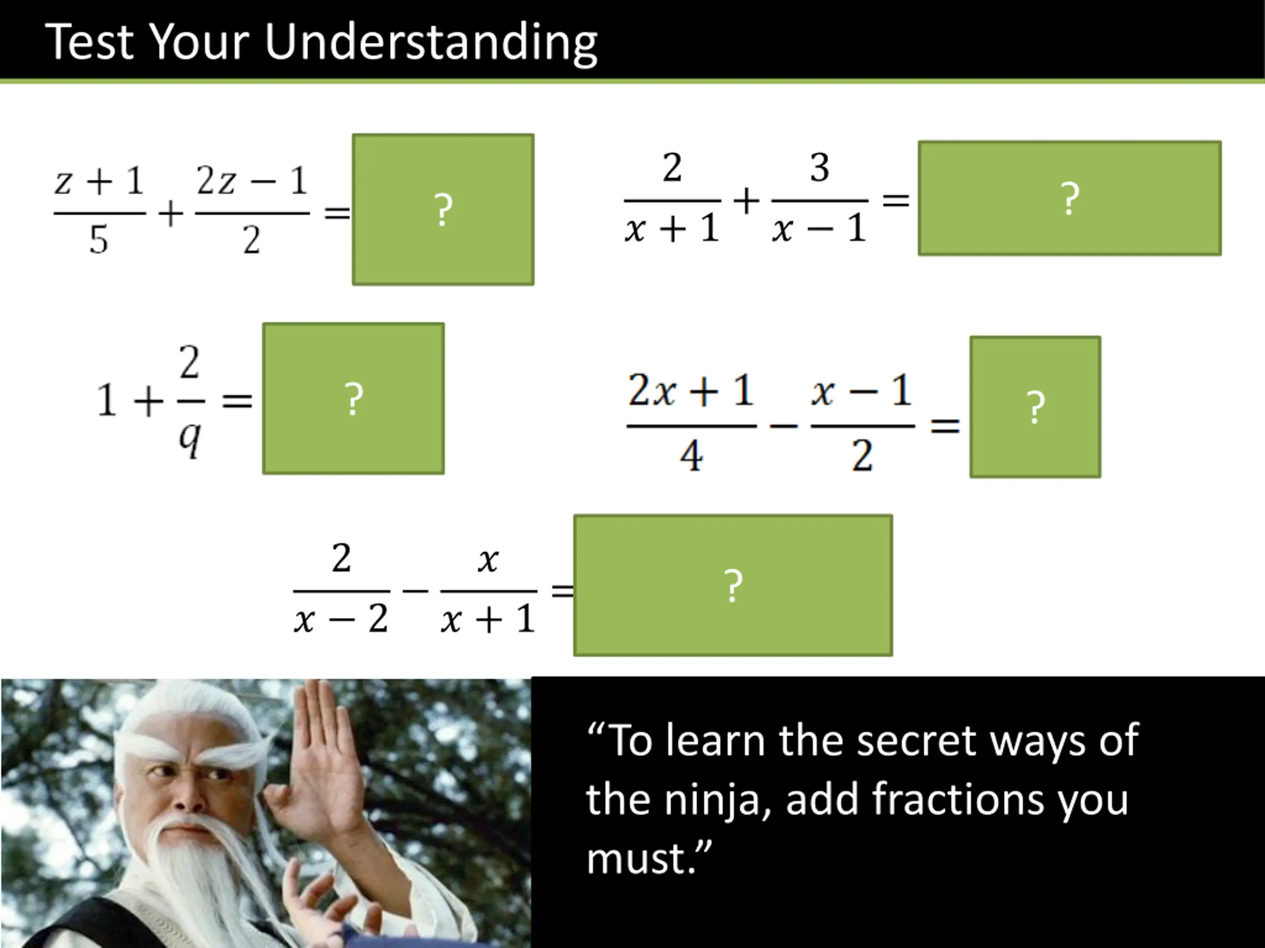 Test Your Understanding 2 3 5? + 1 ? + 1 ? 1 ? ? + 1+ ? 1= ? ? ? 2 ?2+ 4? ? 2 ? + 1 2 ? ? ? 2 ? + 1= To learn the secret ways of the ninja, add fractions you must.