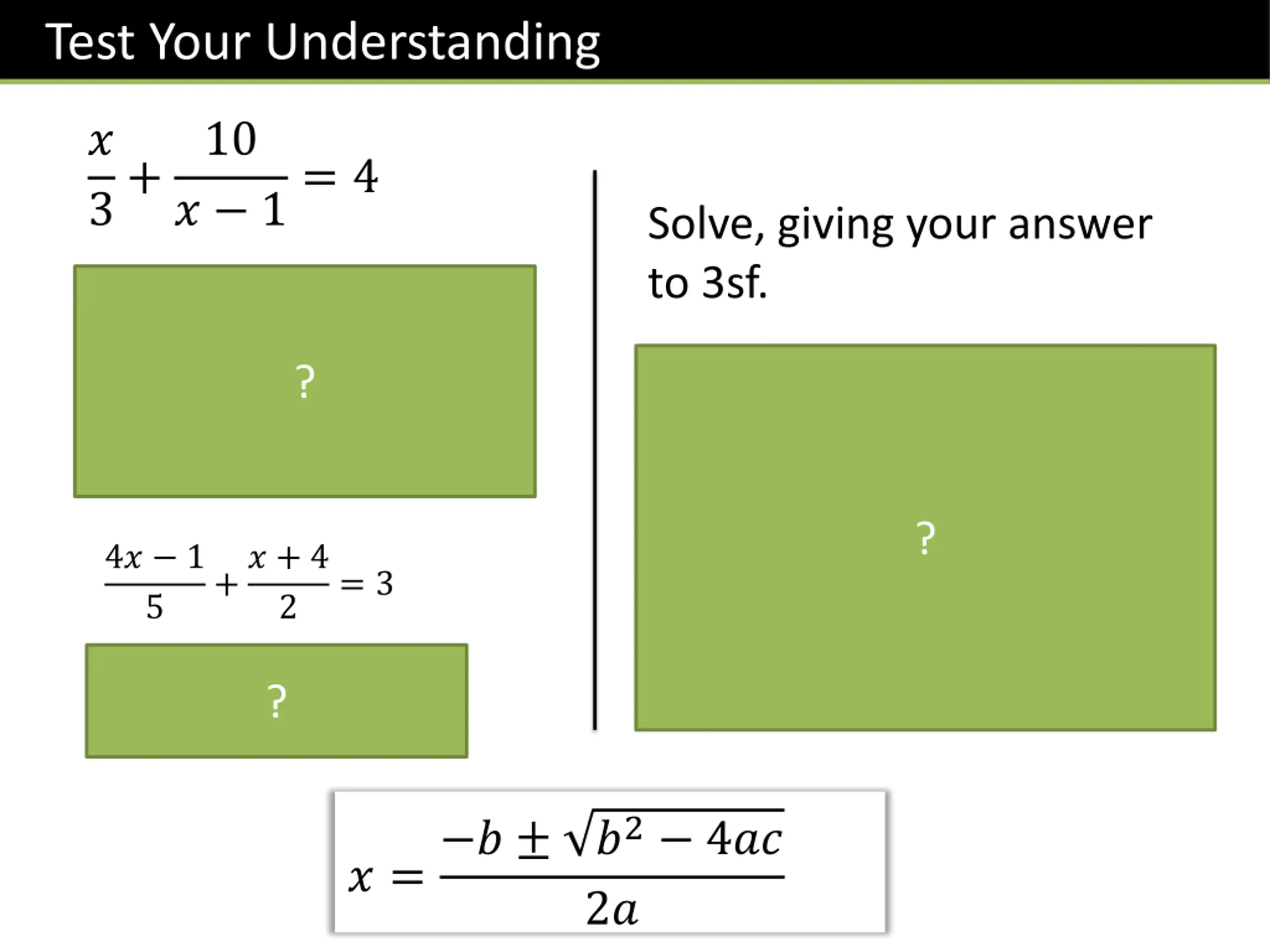 Test Your Understanding ? 3+ 10 ? 1= 4 Solve, giving your answer to 3sf. ?2 13? + 42 = 0 ? 6 ? 7 = 0 ? = 6 ?? ? = 7 ? 1 ?+ 5 = 2 ?2 ? 4? 1 5 +? + 4 ? + 5?2= 2 5?2+ ? 2 ? = 0.740 ?? ? = 0.540 = 3 2 ? =?? ?? ? ? = ? ?2 4?? 2?