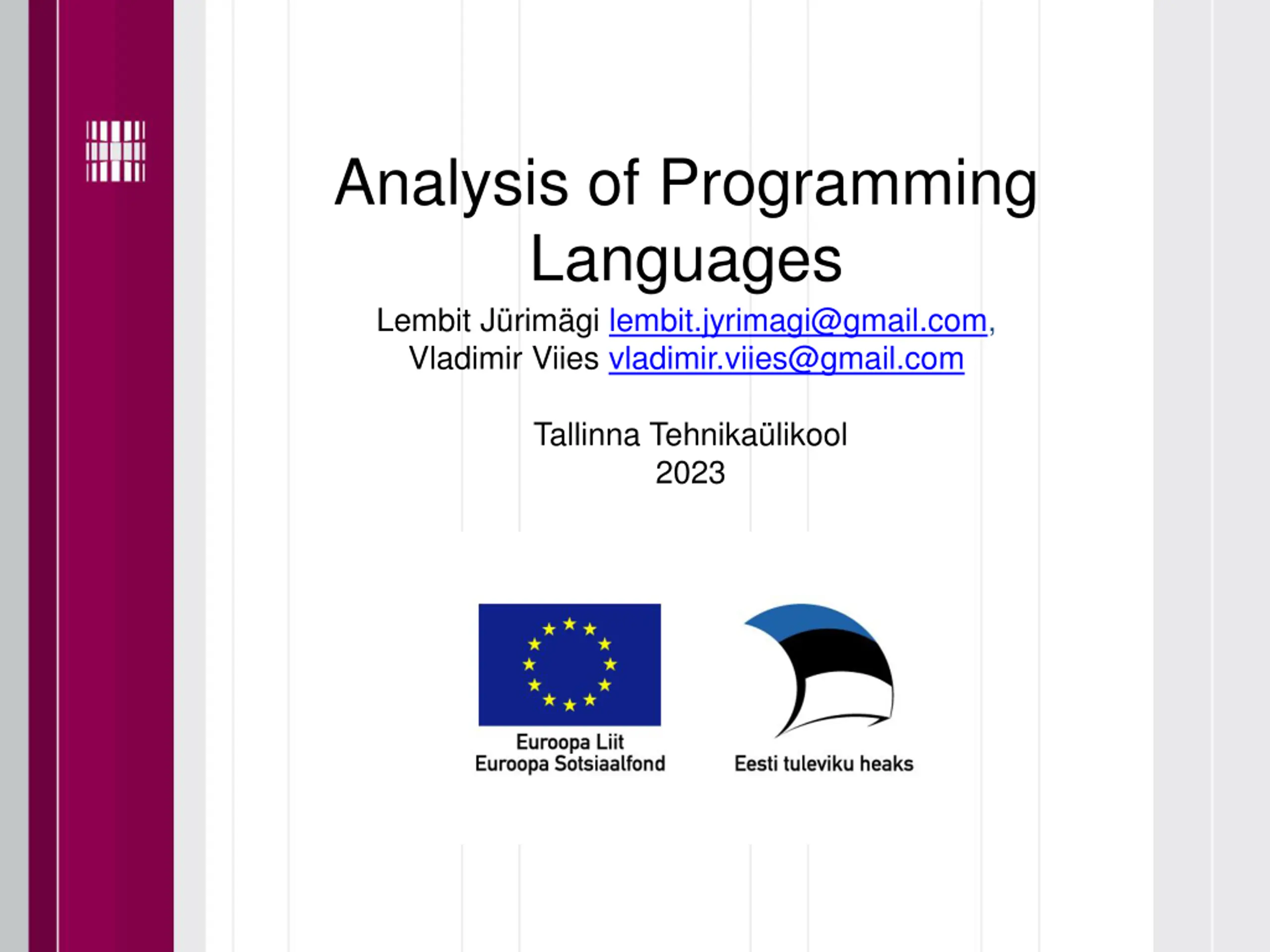 Analysis of Programming Languages Lembit J rim gi lembit.jyrimagi@gmail.com, Vladimir Viies vladimir.viies@gmail.com Tallinna Tehnika likool 2023