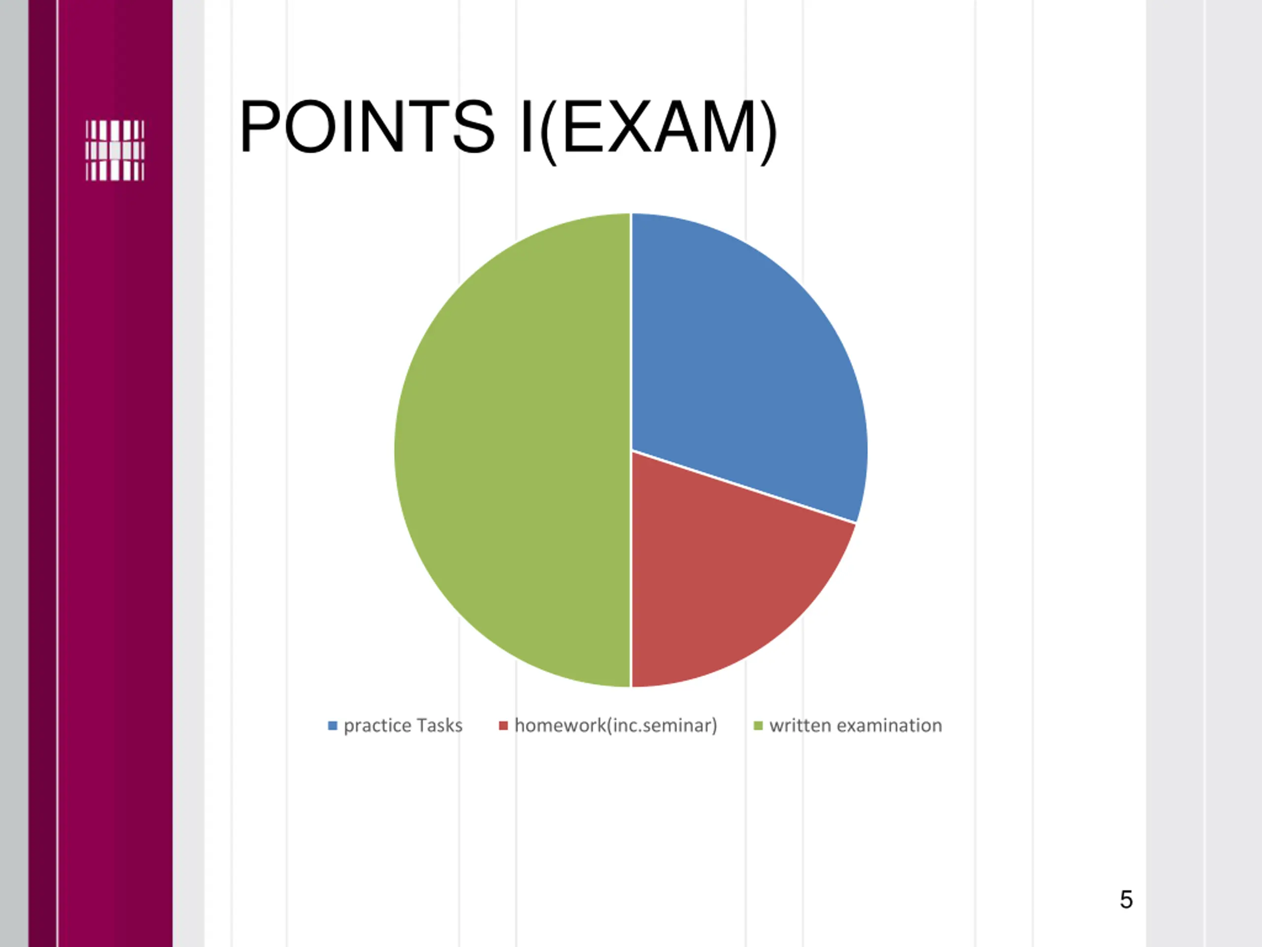 POINTS I(EXAM) practice Tasks homework(inc.seminar) written examination 5
