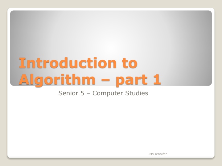 Introduction to Algorithm part 1 Senior 5 Computer Studies Ms Jennifer