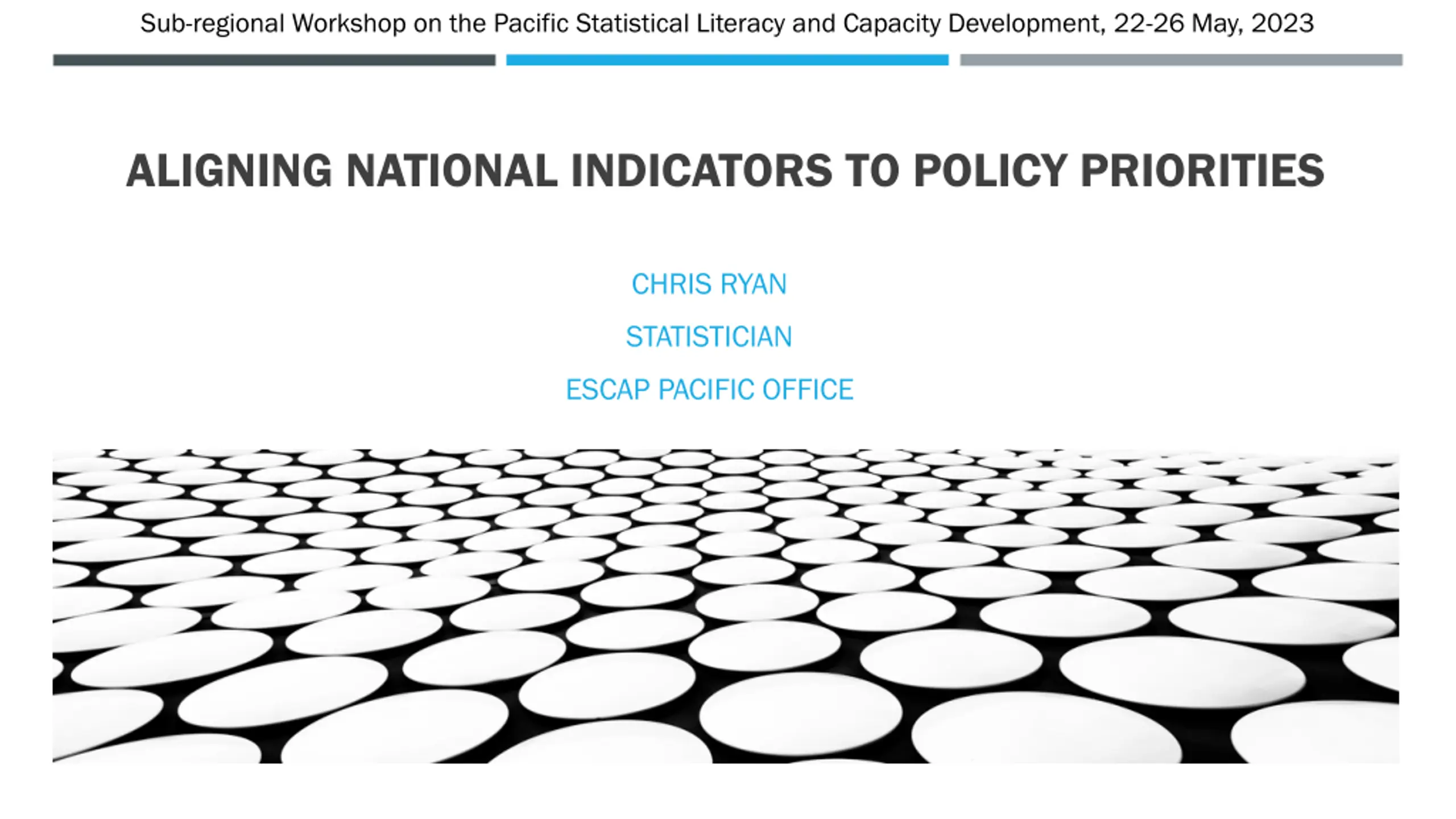 Sub-regional Workshop on the Pacific Statistical Literacy and Capacity Development, 22-26 May, 2023 ALIGNING NATIONAL INDICATORS TO POLICY PRIORITIES CHRIS RYAN STATISTICIAN ESCAP PACIFIC OFFICE