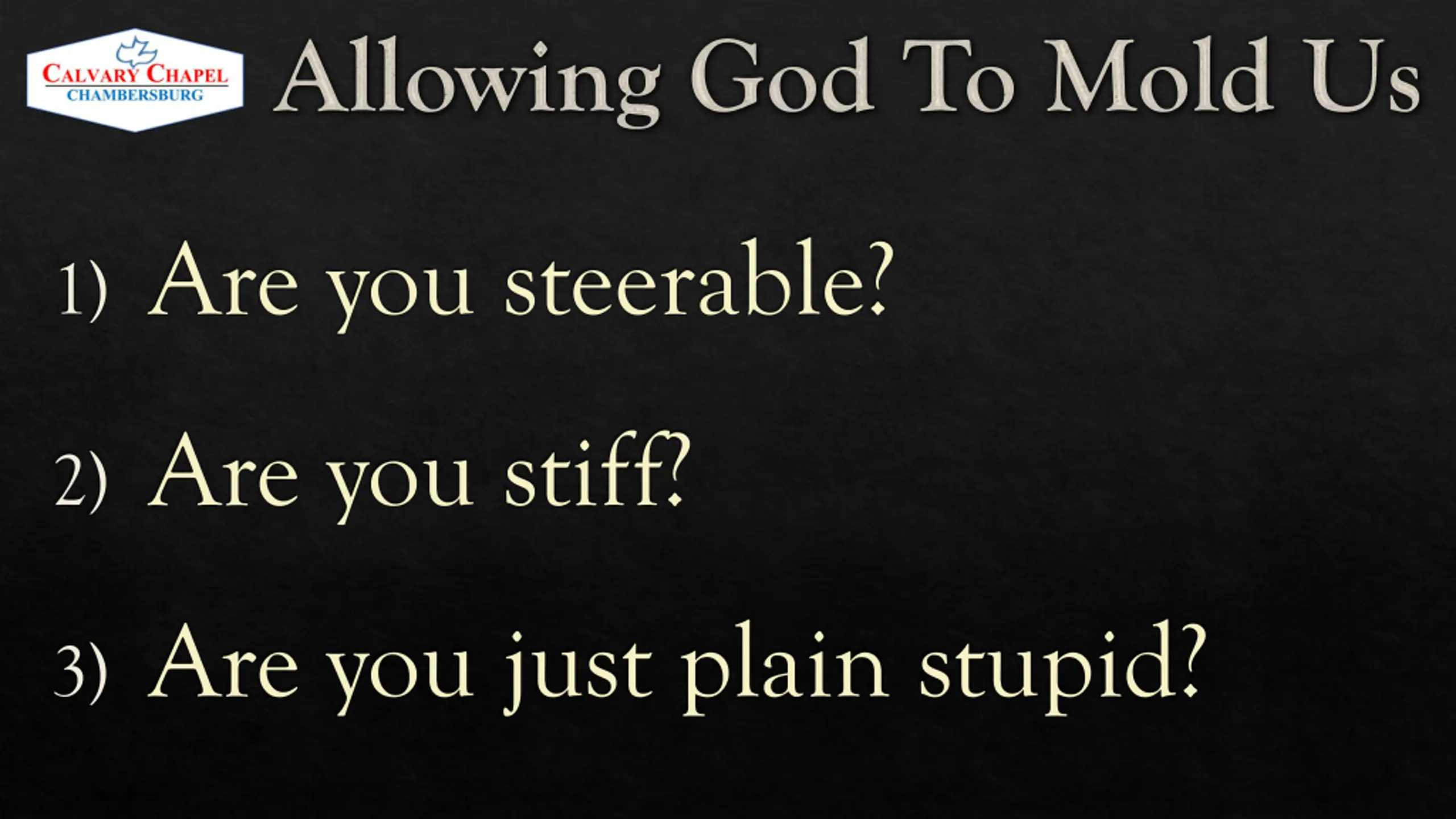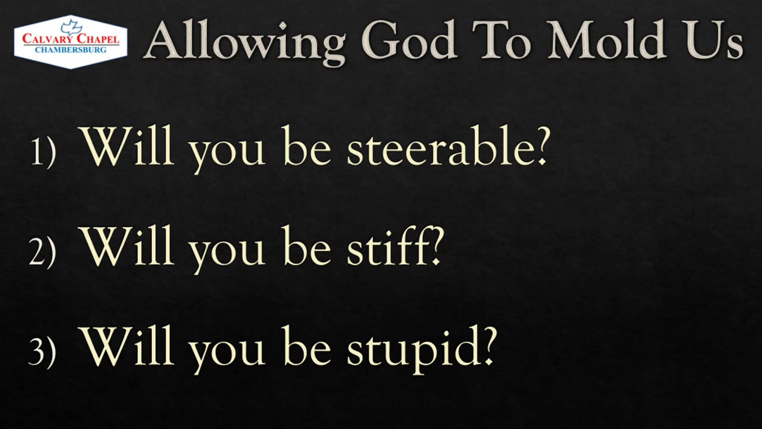 Allowing God To Mold Us Will you be steerable? Will you be stiff? Will you be stupid?