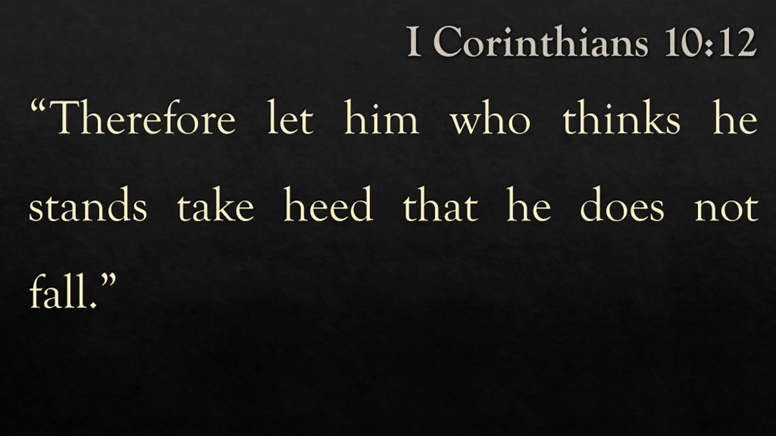 I Corinthians 10:12 Therefore let him who thinks he stands take heed that he does not fall.