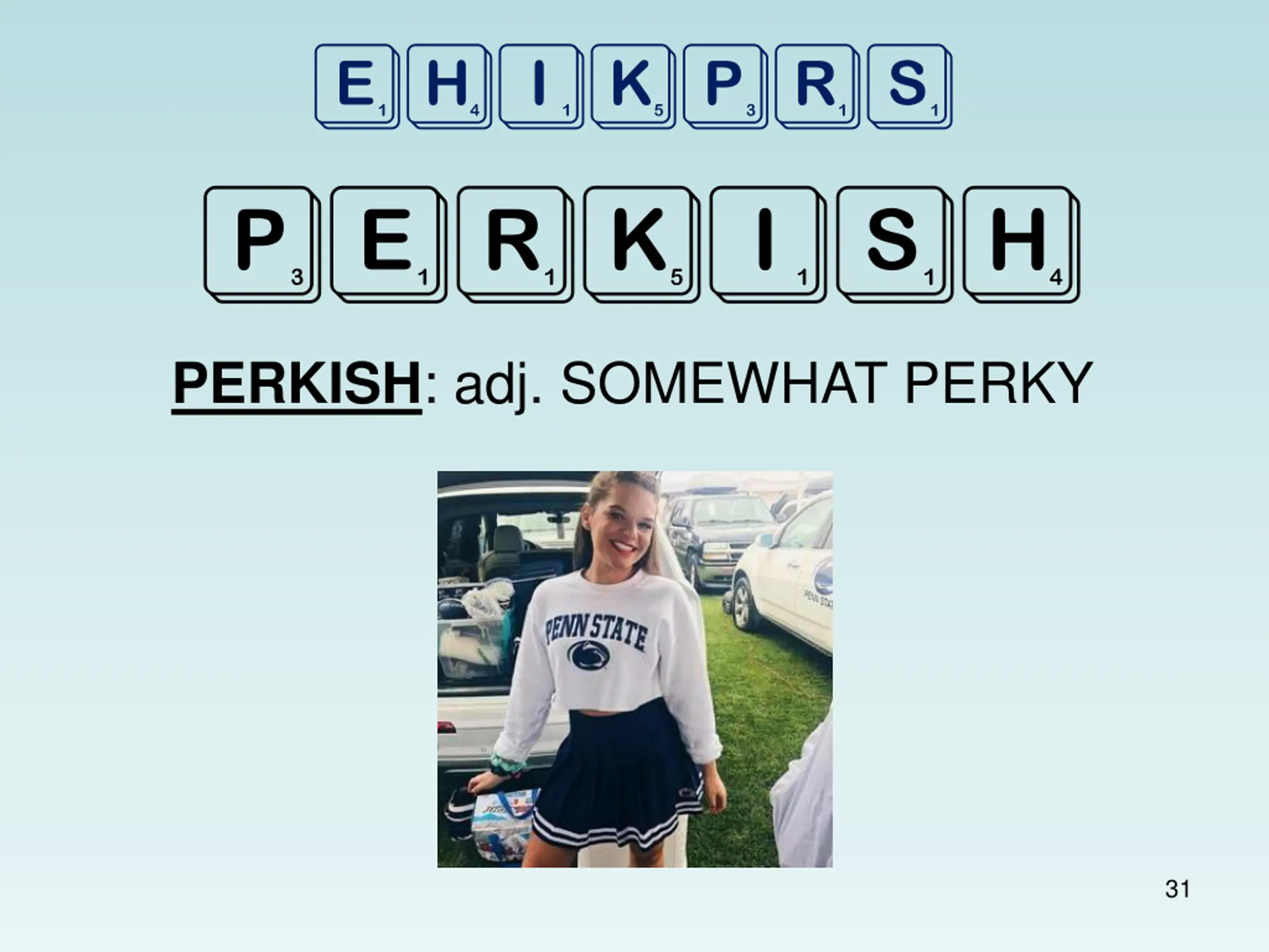 EHIKPRS PERKISH PERKISH: adj. SOMEWHAT PERKY 31