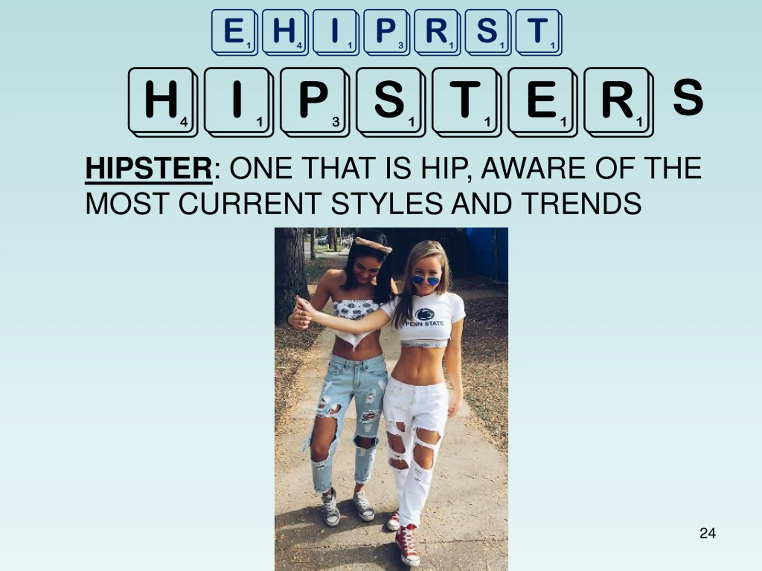 EHIPRST HIPSTERS HIPSTER: ONE THAT IS HIP, AWARE OF THE MOST CURRENT STYLES AND TRENDS 24
