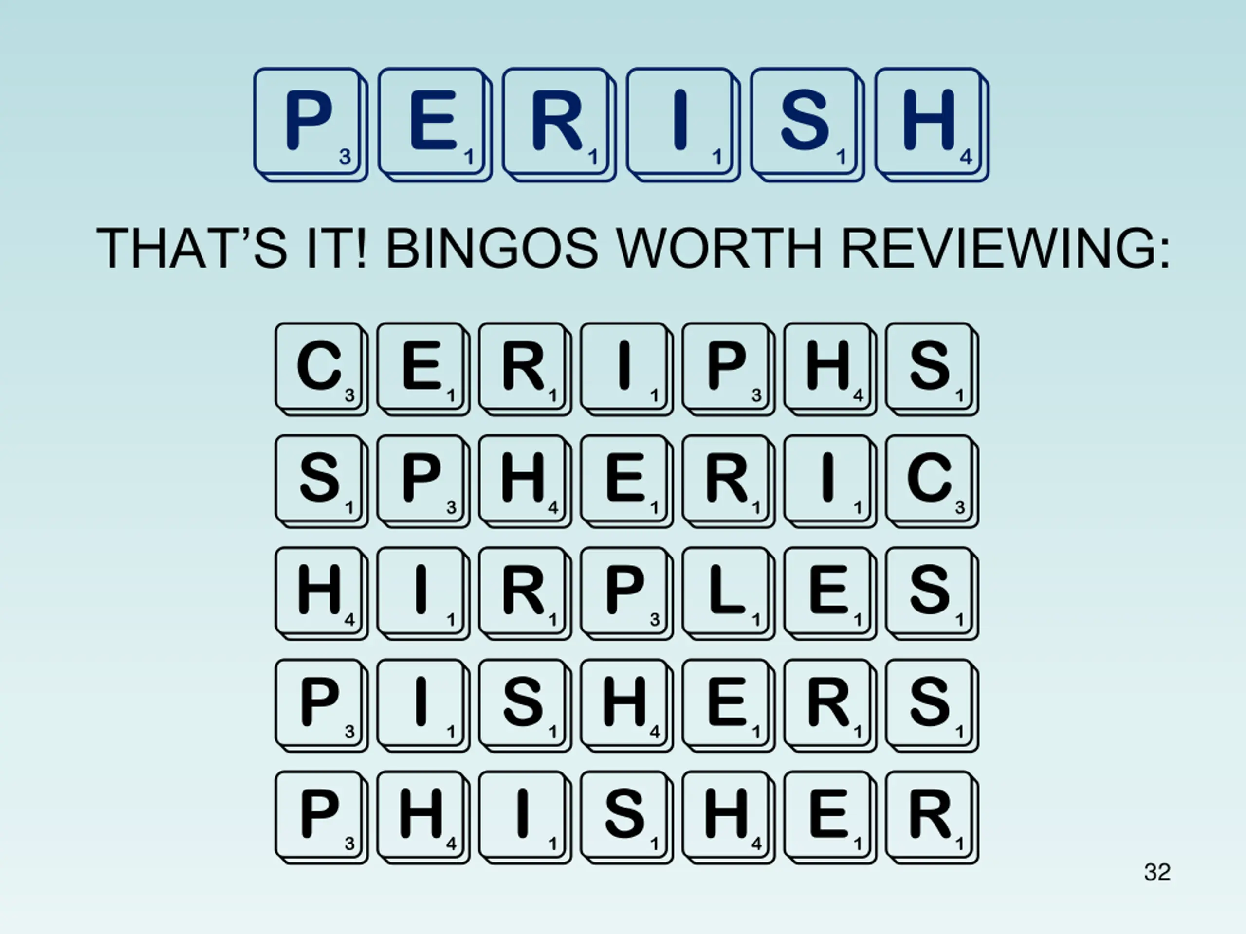 PERISH THAT S IT! BINGOS WORTH REVIEWING: CERIPHS SPHERIC HIRPLES PISHERS PHISHER 32