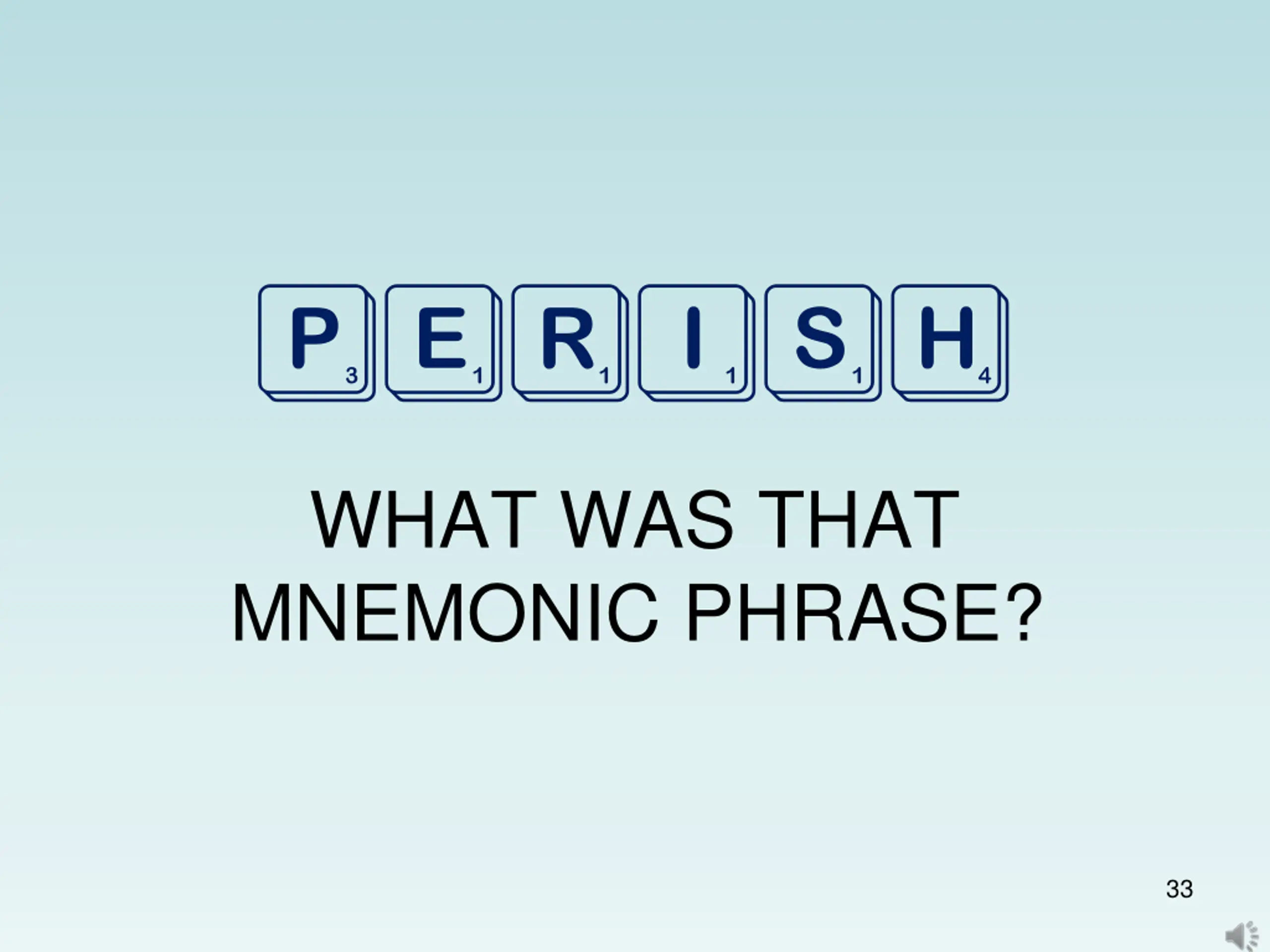PERISH WHAT WAS THAT MNEMONIC PHRASE? 33