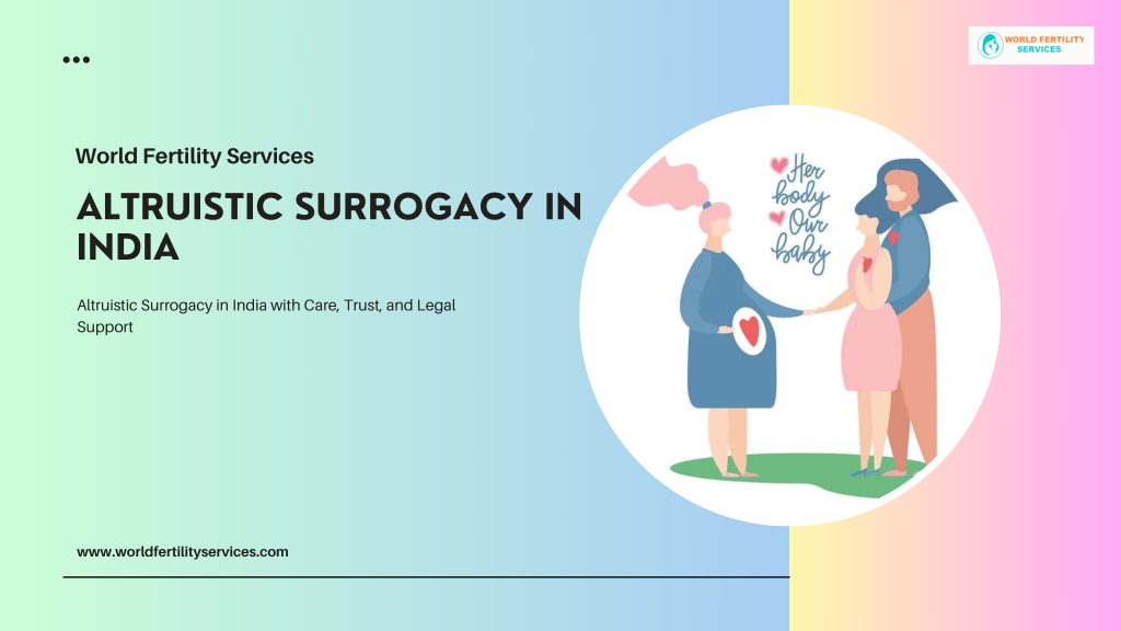 www.worldfertilityservices.com World Fertility Services ABOUT US For couples feeling infertility, altruistic surrogacy in India provides a gentle route to parenting. India is become a reliable destination for high-quality, cheap healthcare. Commercial surrogacy has given way to altruistic surrogacy because to ethical concerns, which provide help over profit. As you travel this hopeful, legally protected path, World Fertility Services promises care, openness, and a better future for families.