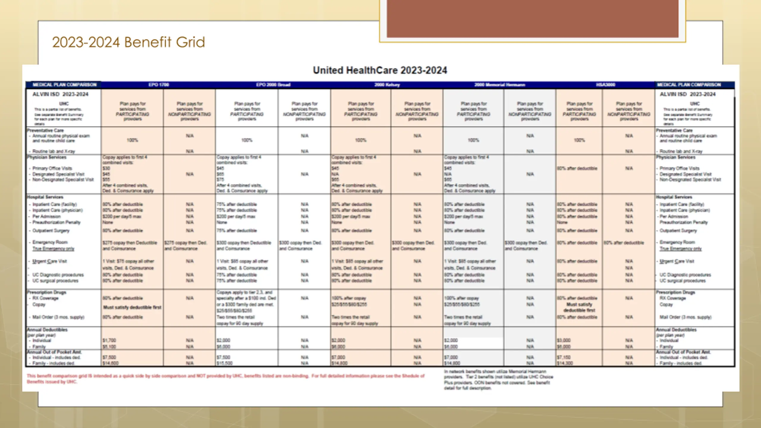 Explore Alvin ISD's health insurance benefits for the year 2023-2024, including information on open enrollment, coverage options with United HealthCare, deductible details, preventive care services, out-of-pocket maximums, and understanding emergency room coverage. Ensure you make informed decisions about your health coverage for the upcoming year.