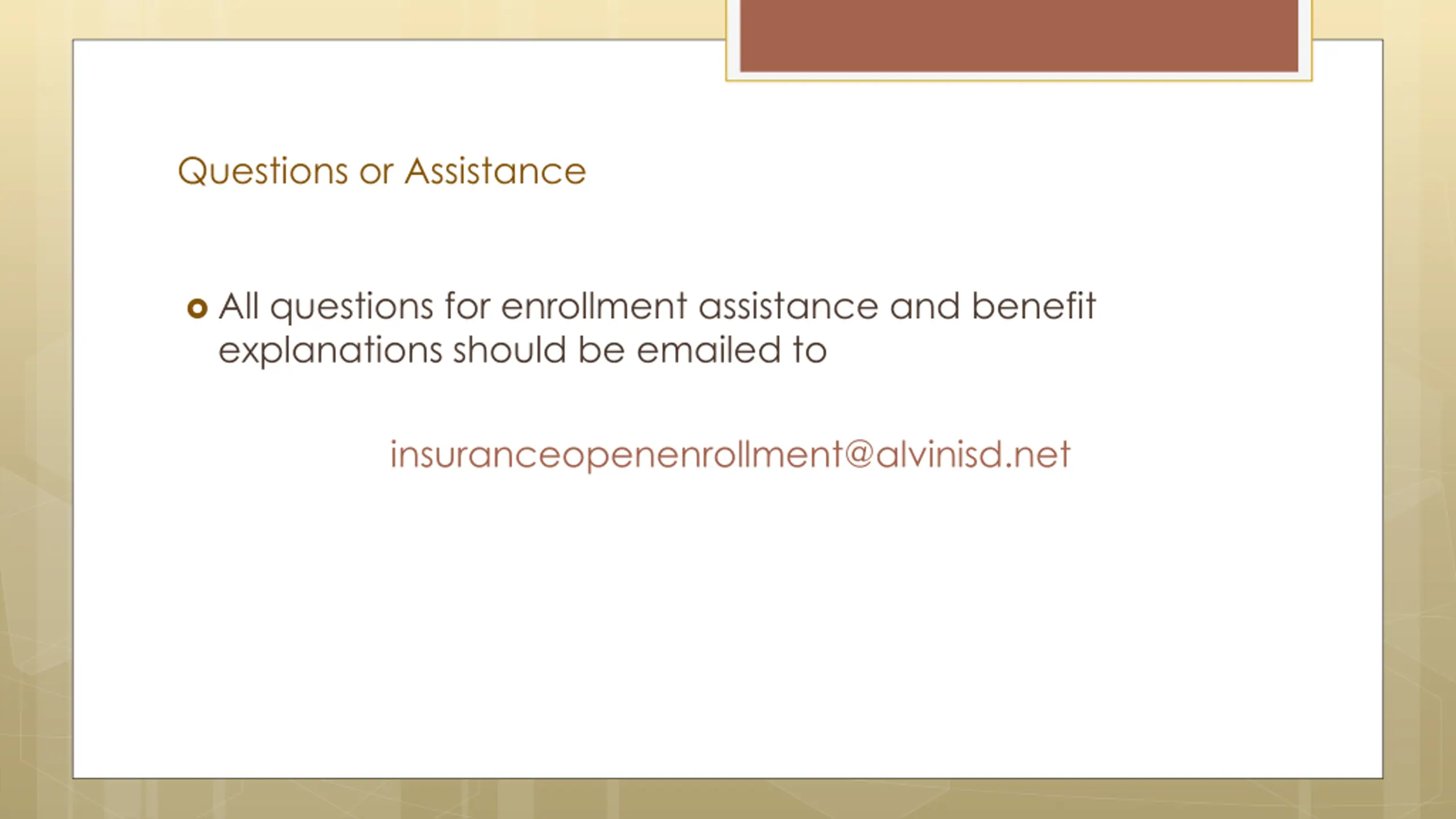 Questions or Assistance All questions for enrollment assistance and benefit explanations should be emailed to insuranceopenenrollment@alvinisd.net