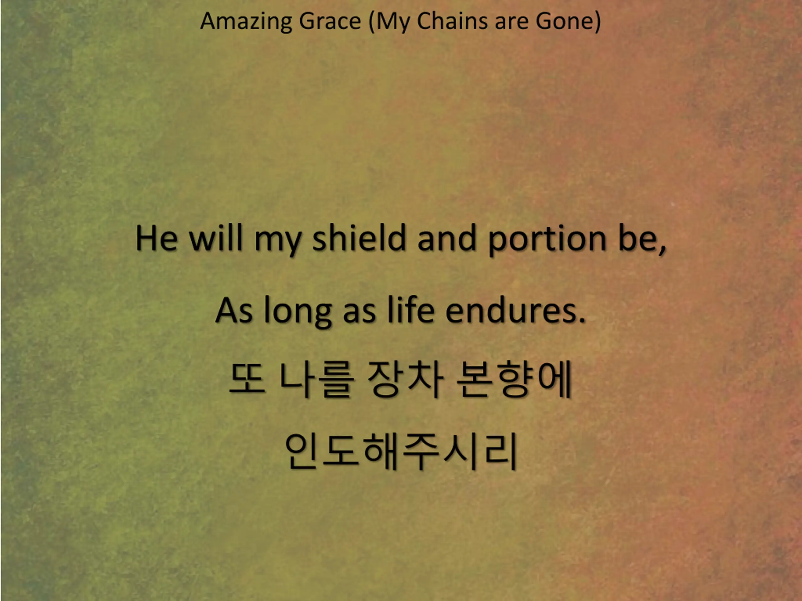 Amazing Grace (My Chains are Gone) He will my shield and portion be, As long as life endures.