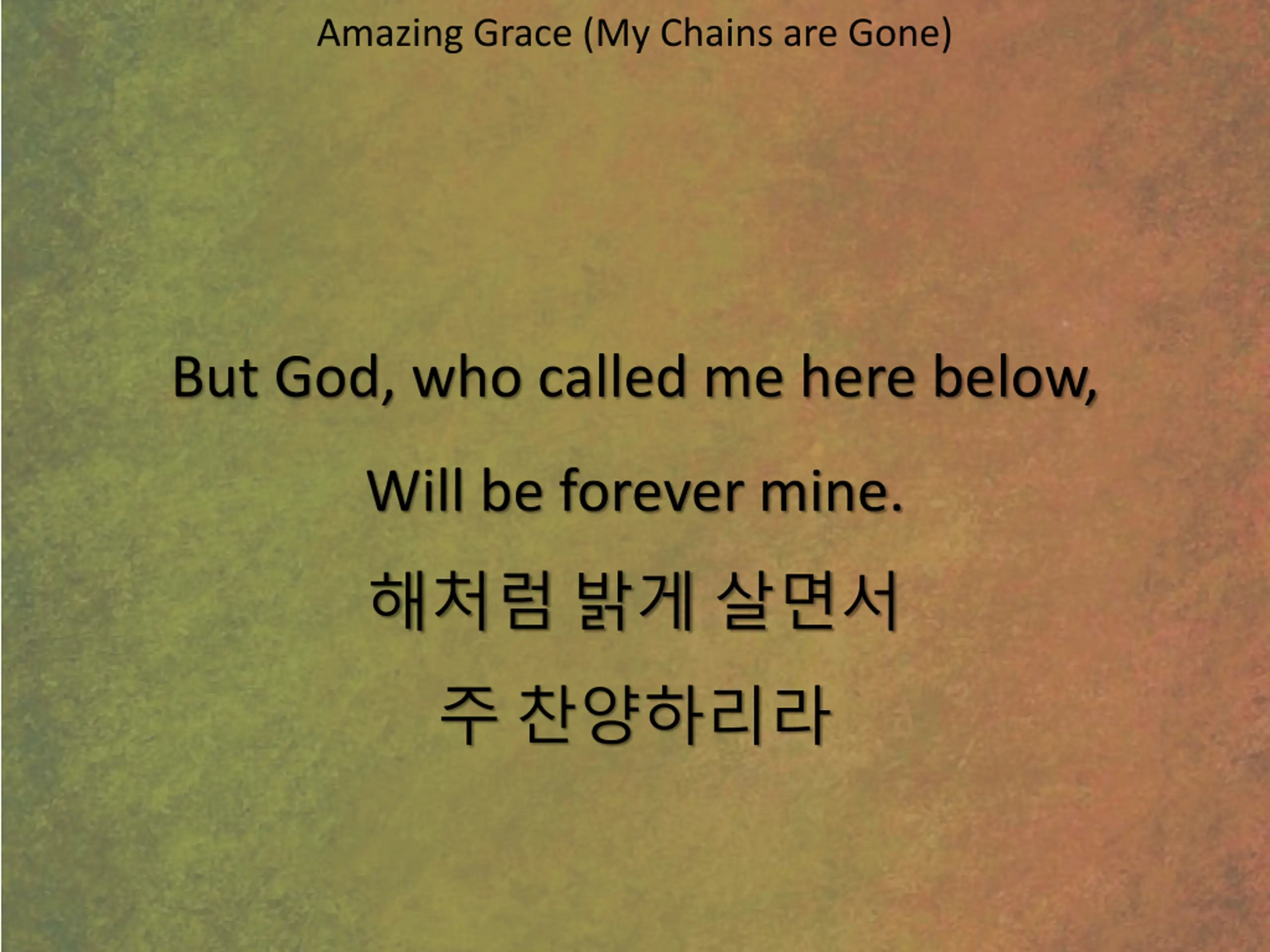 Amazing Grace (My Chains are Gone) But God, who called me here below, Will be forever mine.