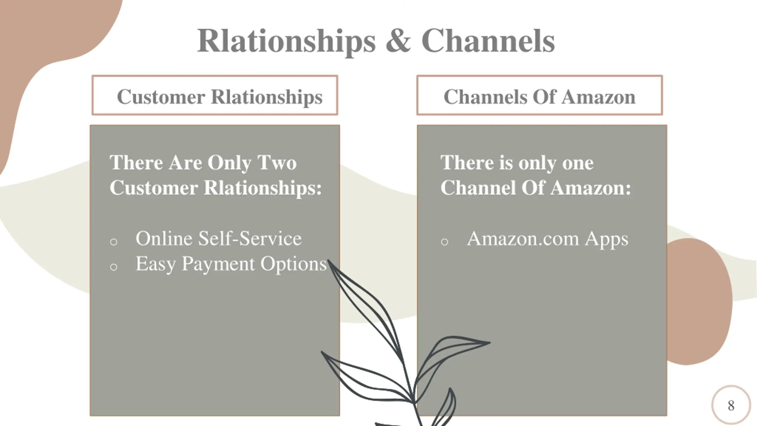 Rlationships & Channels Customer Rlationships Channels Of Amazon There Are Only Two Customer Rlationships: There is only one Channel Of Amazon: o Online Self-Service o Easy Payment Options o Amazon.com Apps 8
