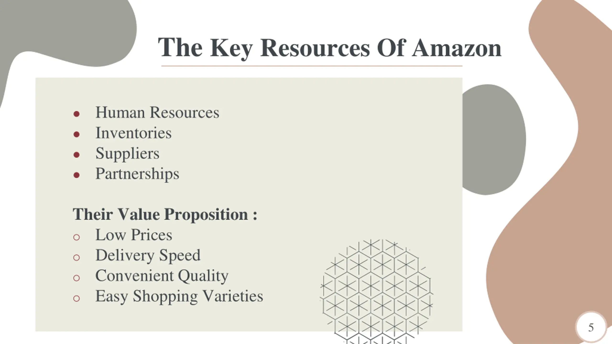 The Key Resources Of Amazon Human Resources Inventories Suppliers Partnerships Their Value Proposition : o Low Prices o Delivery Speed o Convenient Quality o Easy Shopping Varieties 5