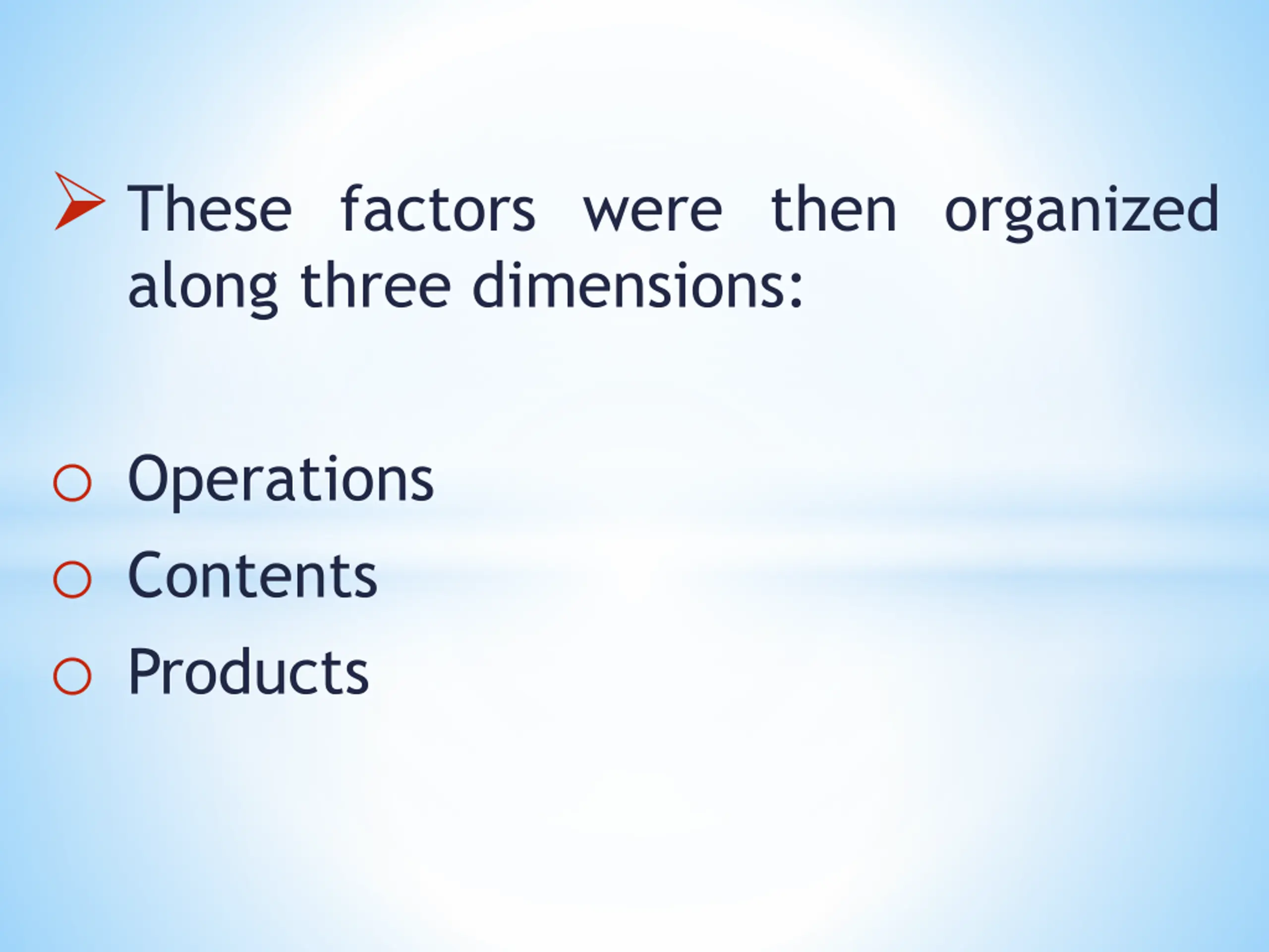 These factors were then organized along three dimensions: o Operations o Contents o Products