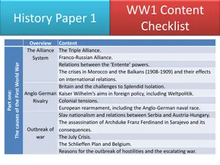 The Causes of World War I Nationalism Escalates Tension in Europe Militarism Increases Arms Production Alliances Between Nations Increase the Potential for War A Significant Assassination