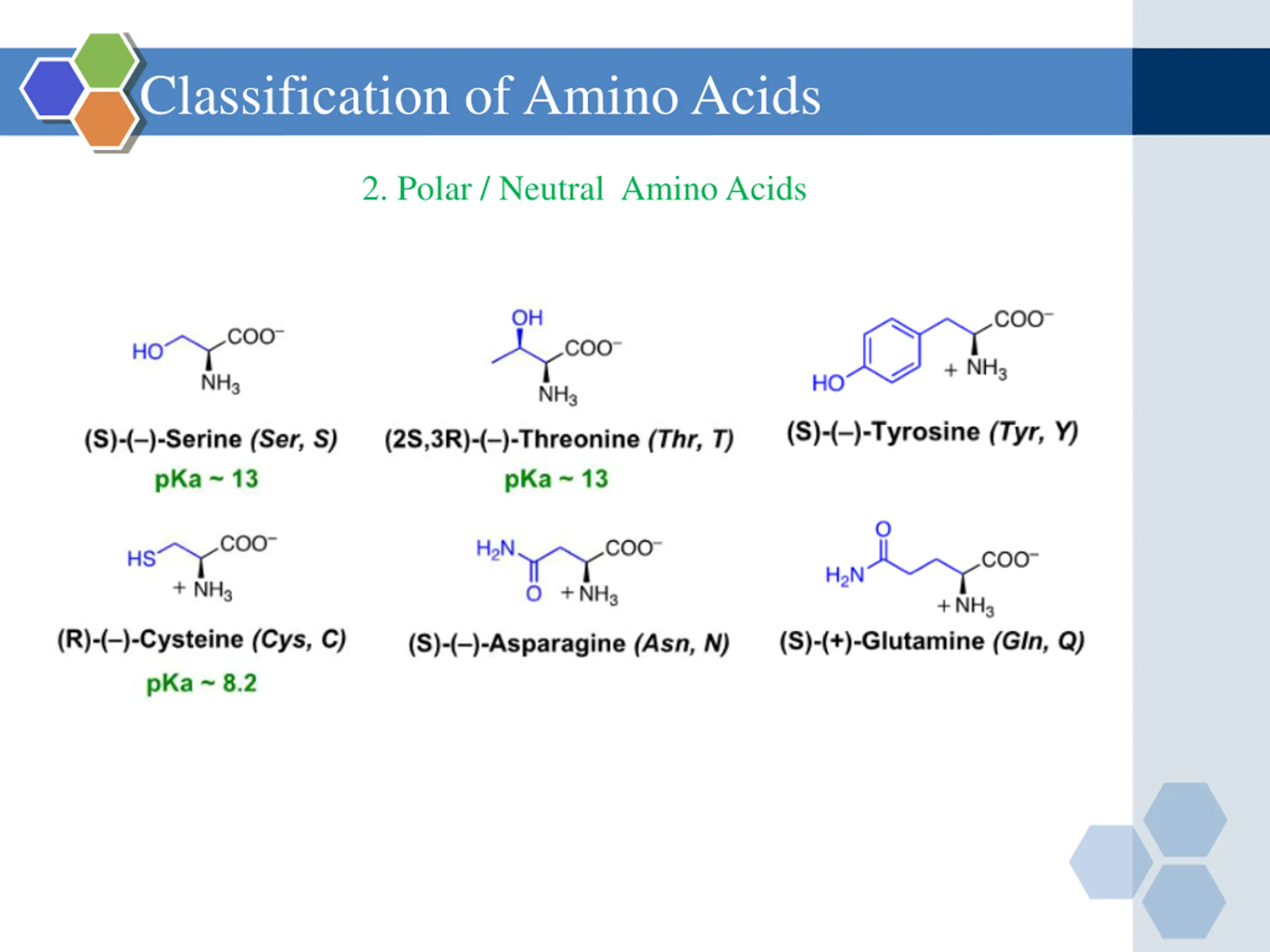 Classification of Amino Acids 2. Polar / Neutral Amino Acids