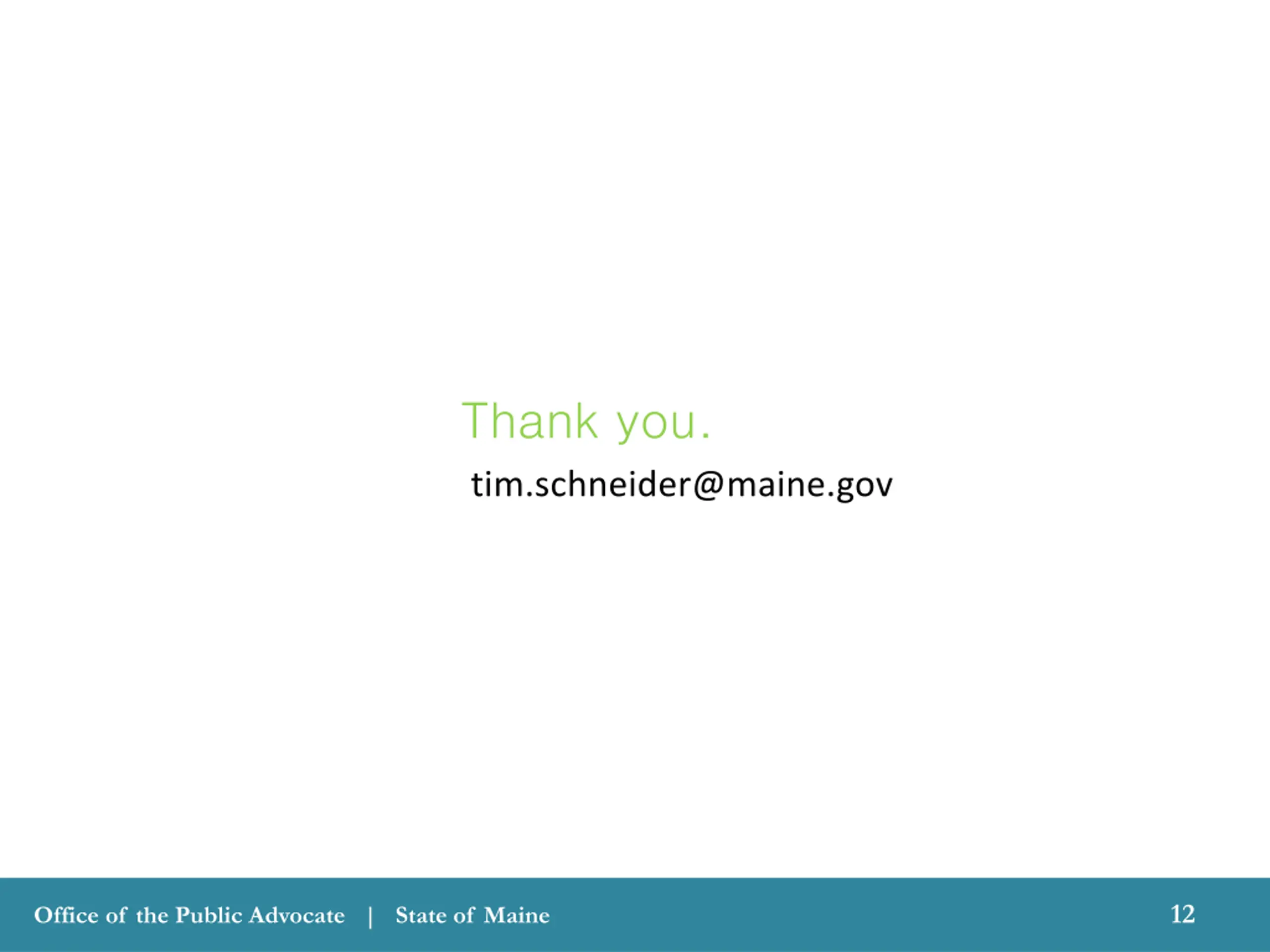 Thank you. tim.schneider@maine.gov 12 Office of the Public Advocate | State of Maine