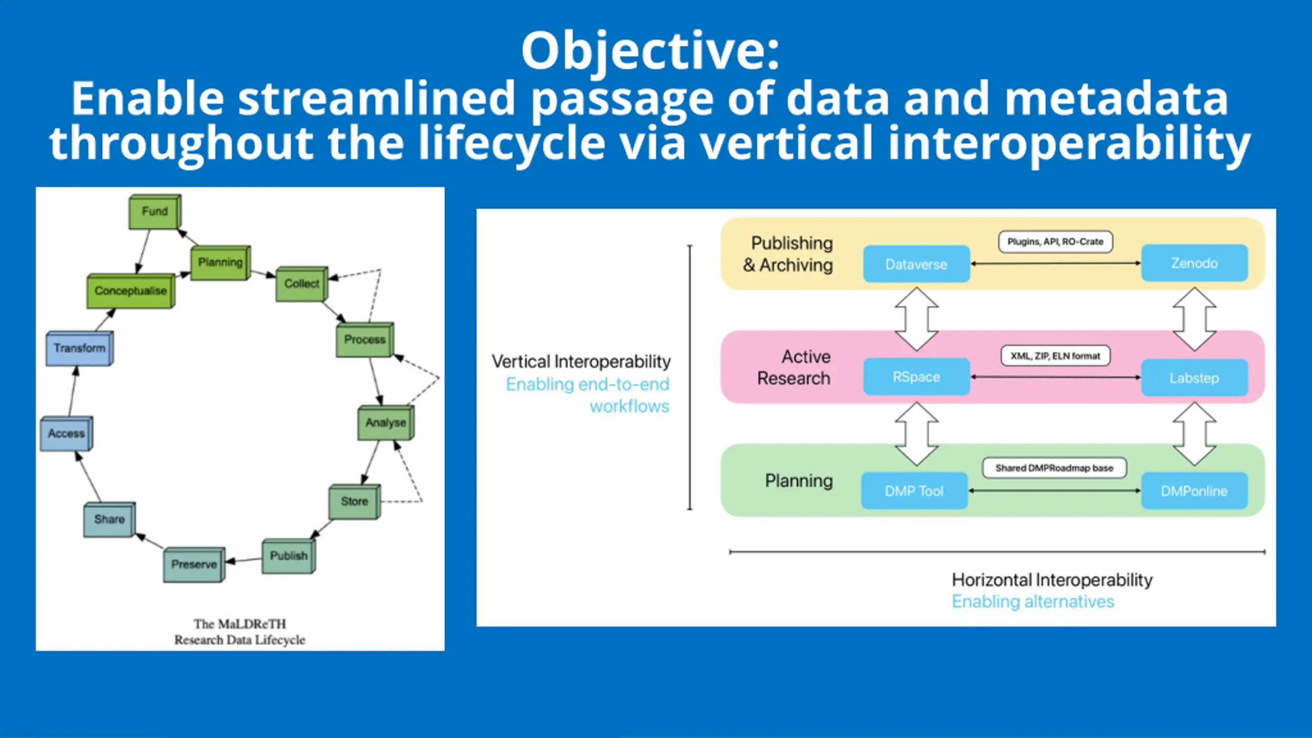 Objective: Enable streamlined passage of data and metadata throughout the lifecycle via vertical interoperability