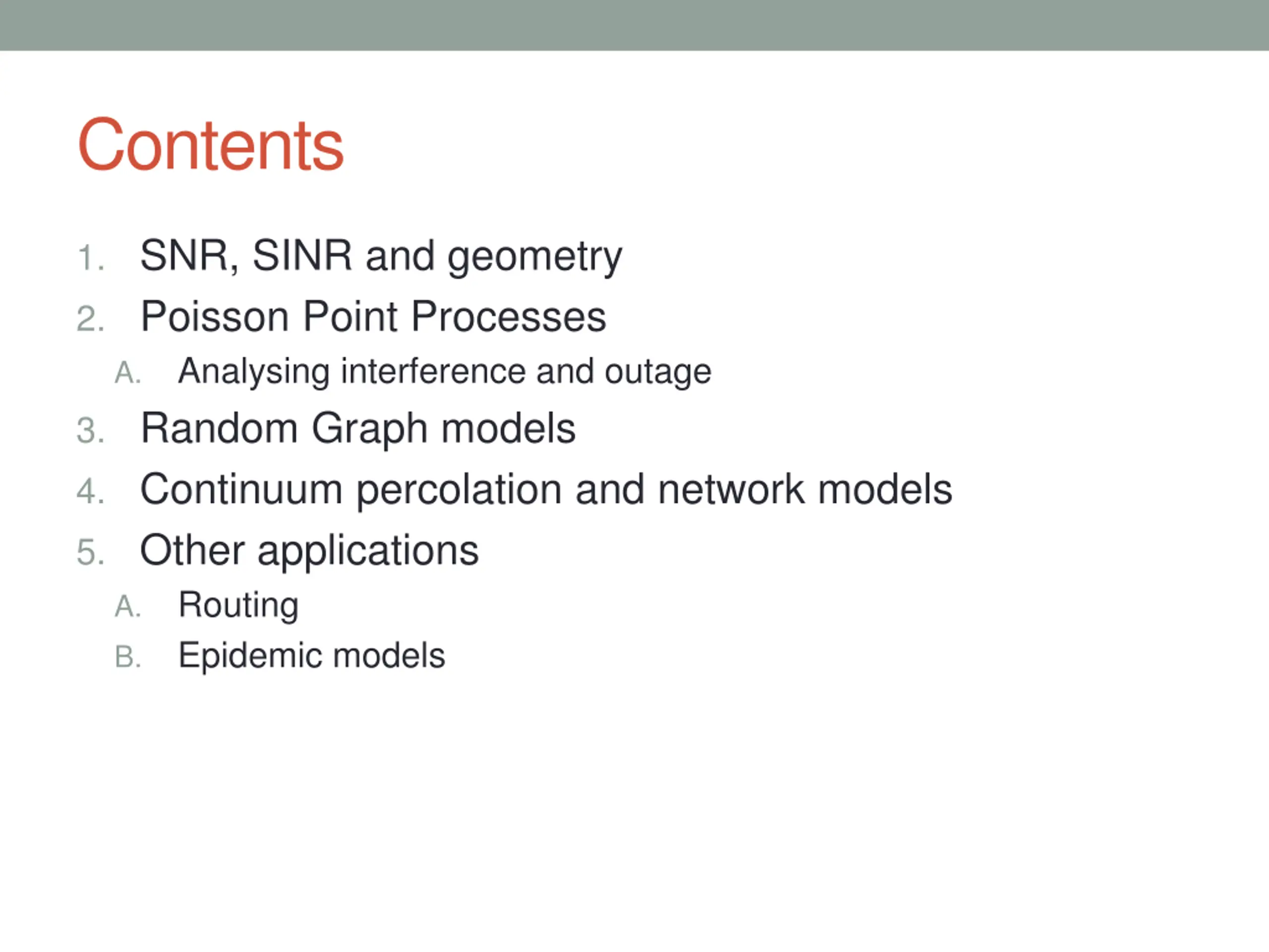 Contents 1. SNR, SINR and geometry 2. Poisson Point Processes A. Analysing interference and outage 3. Random Graph models 4. Continuum percolation and network models 5. Other applications A. Routing B. Epidemic models