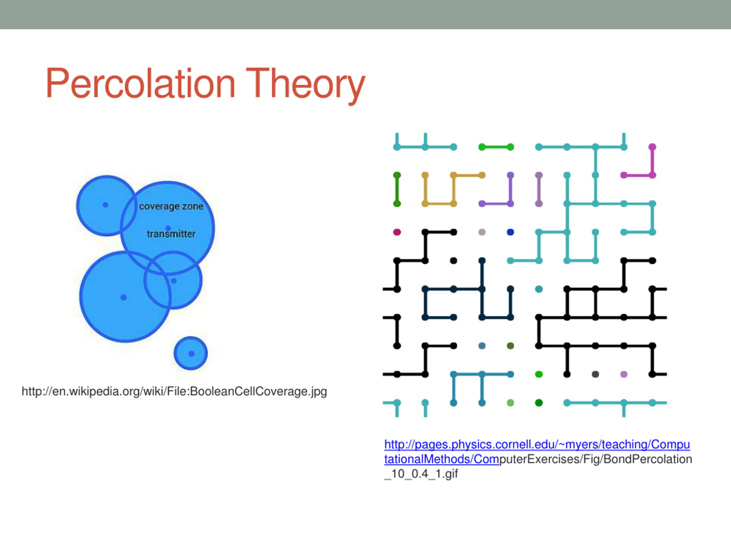 Percolation Theory http://en.wikipedia.org/wiki/File:BooleanCellCoverage.jpg http://pages.physics.cornell.edu/~myers/teaching/Compu tationalMethods/ComputerExercises/Fig/BondPercolation _10_0.4_1.gif